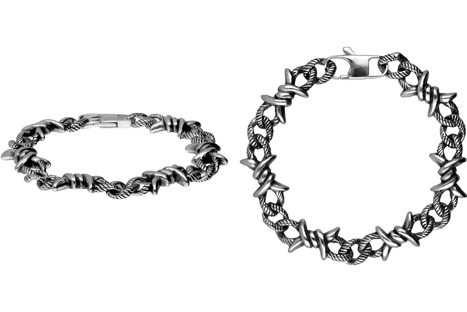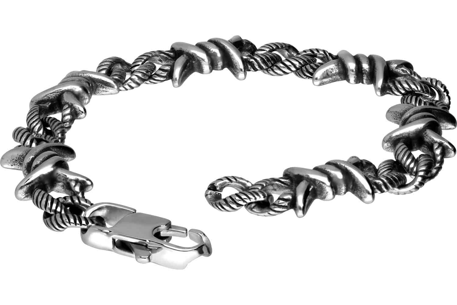 Eigenschaften auch durch Formstabilität und hohe Kratz- und Korrosionsbeständigkeit auszeichnet. Visuell überzeugt das Schmuckstück mithilfe seines originellen Designs, welches an einen Stacheldraht erinnert.