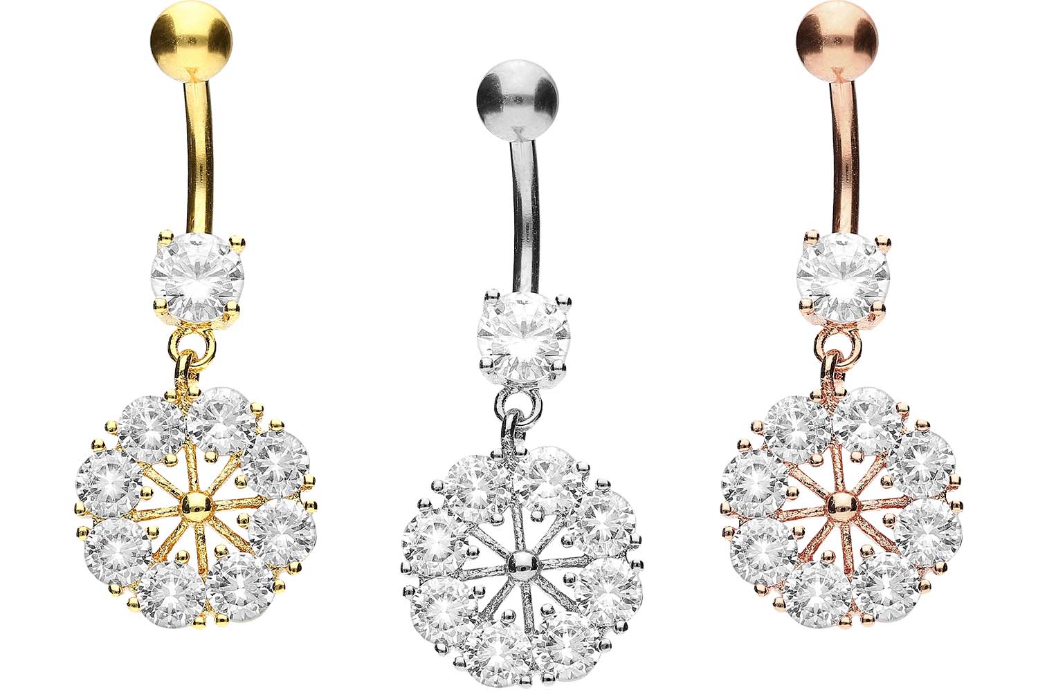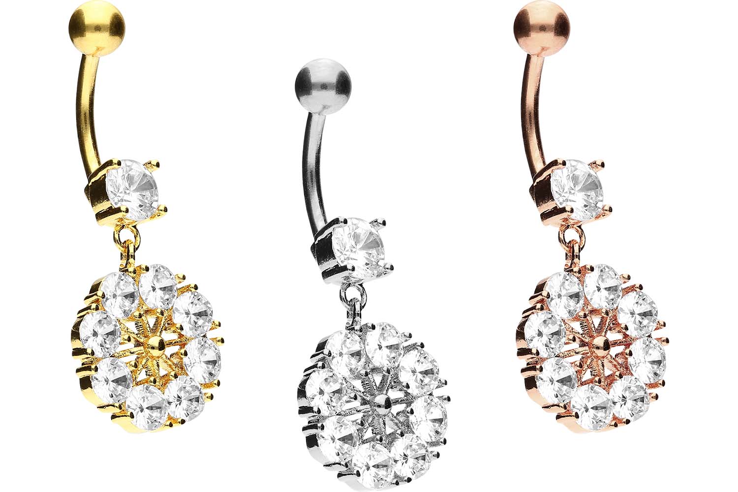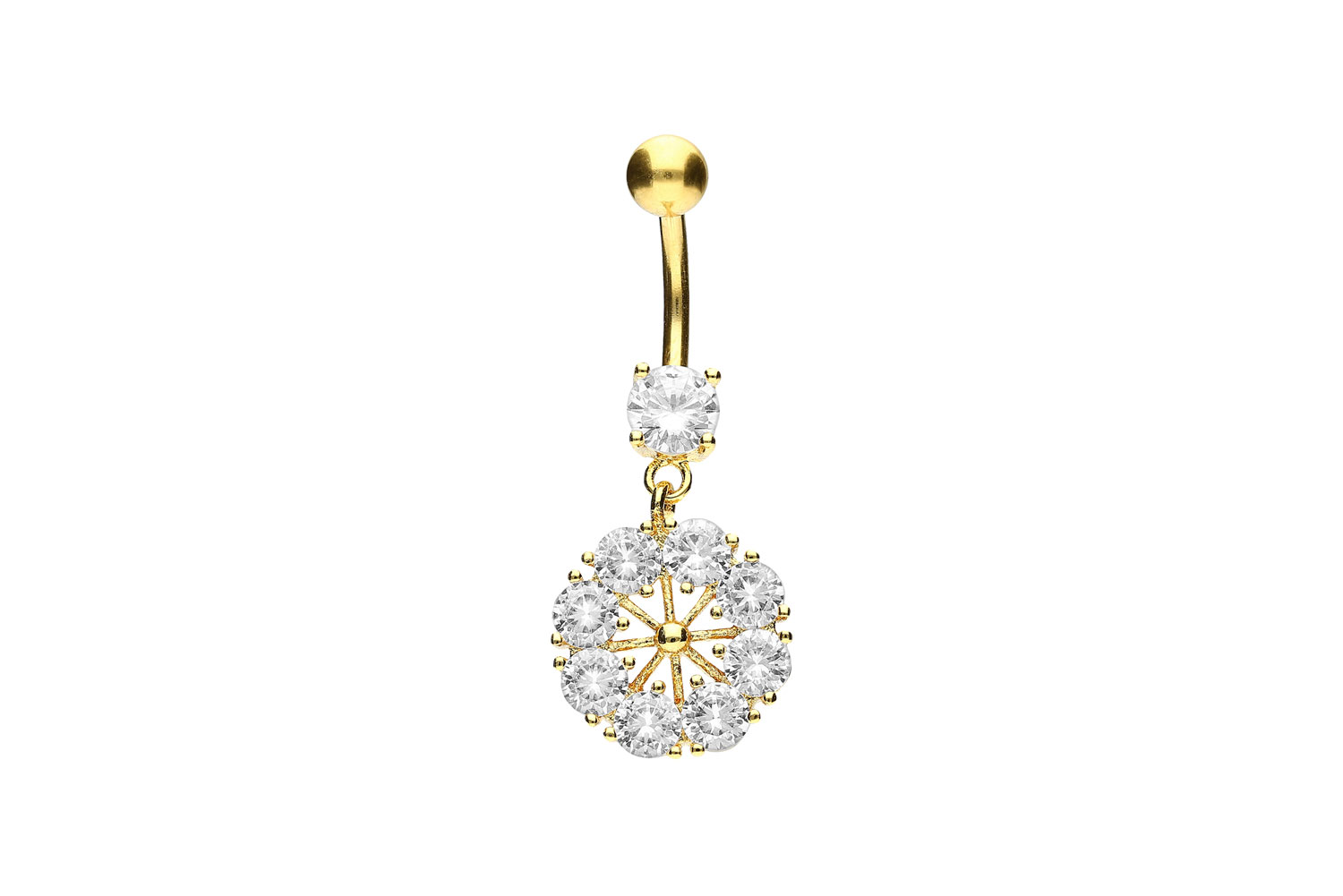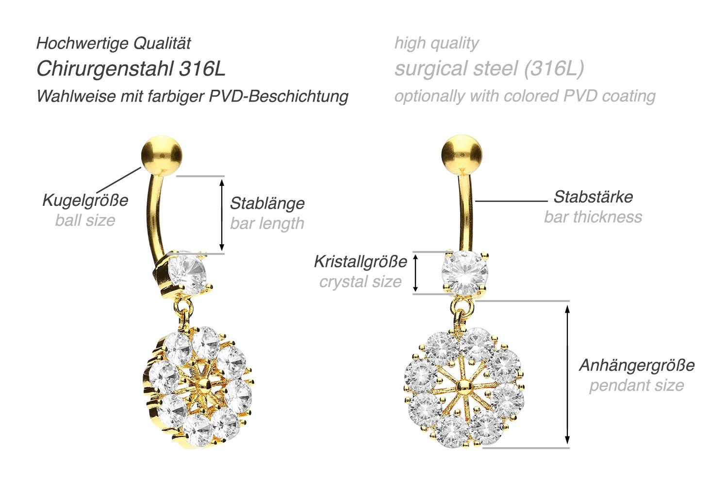 Chirurgenstahl 316L - Bauchnabelpiercing mit Brass-Design Kristallkranz