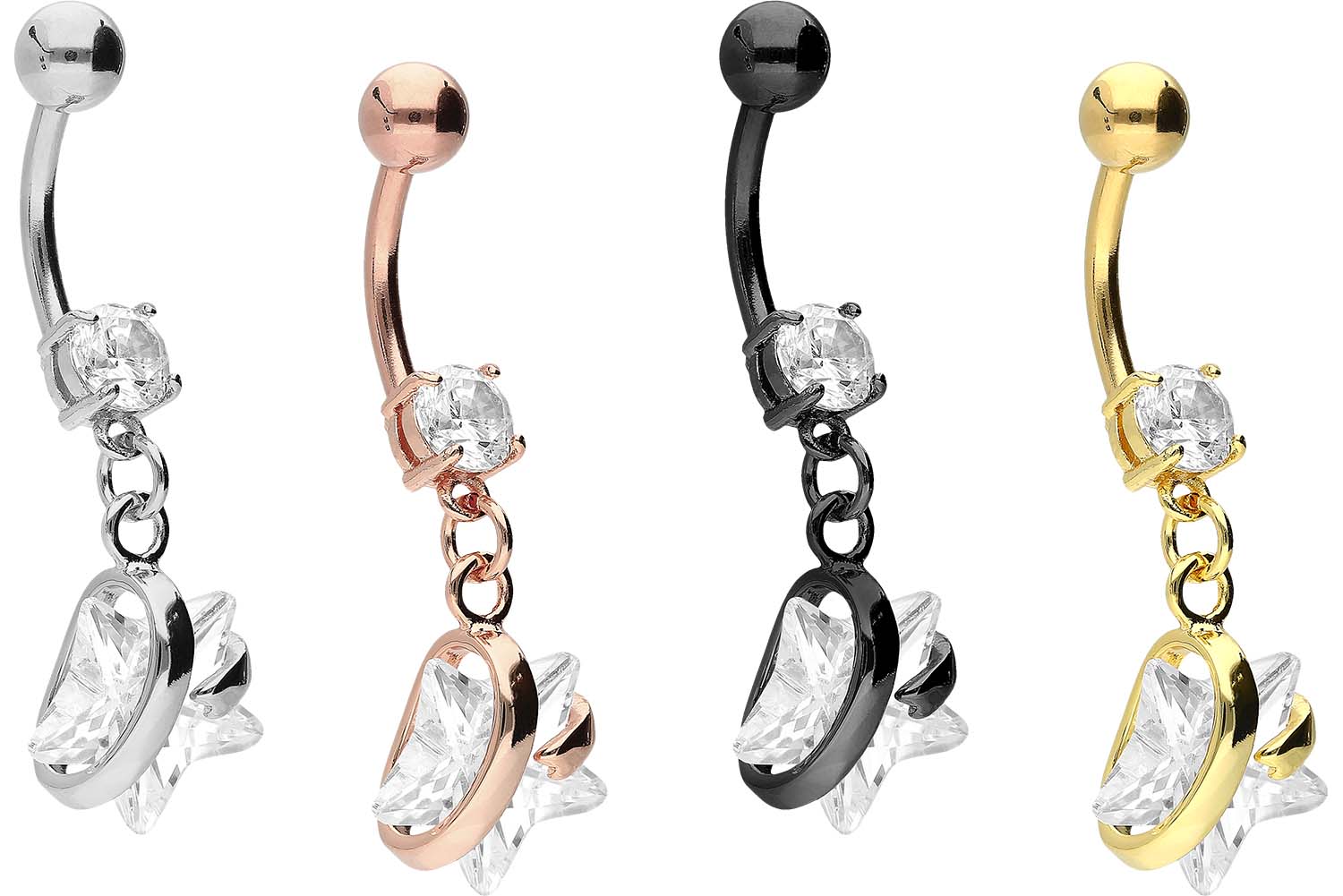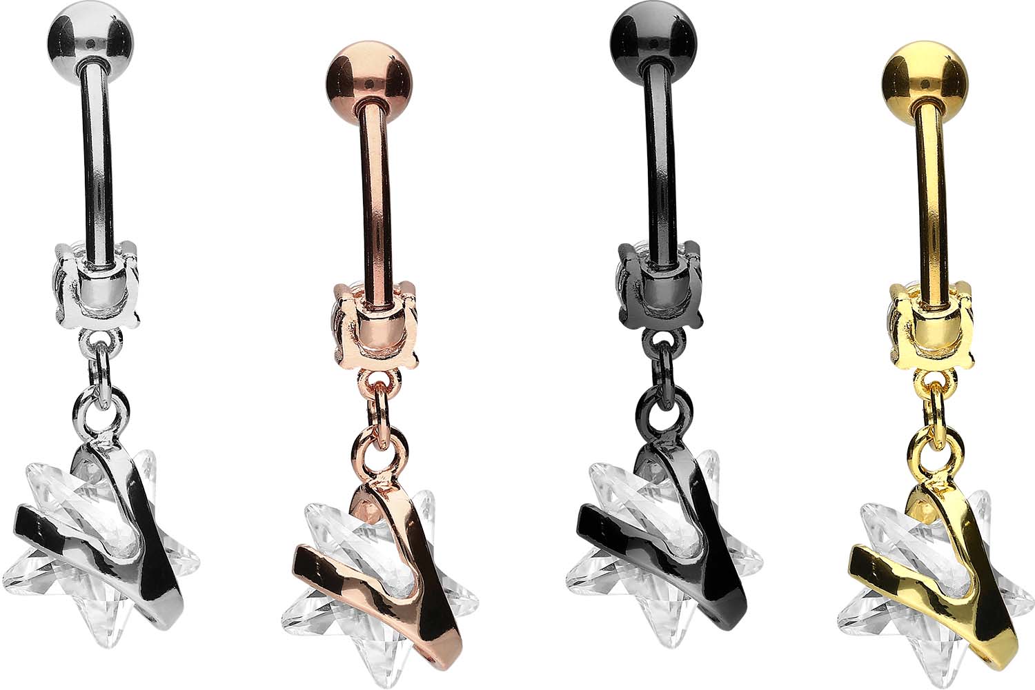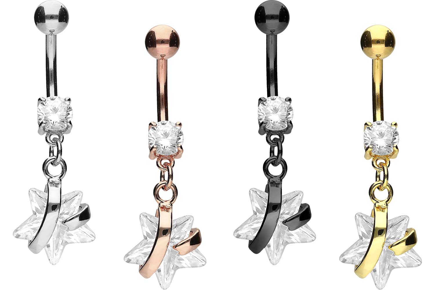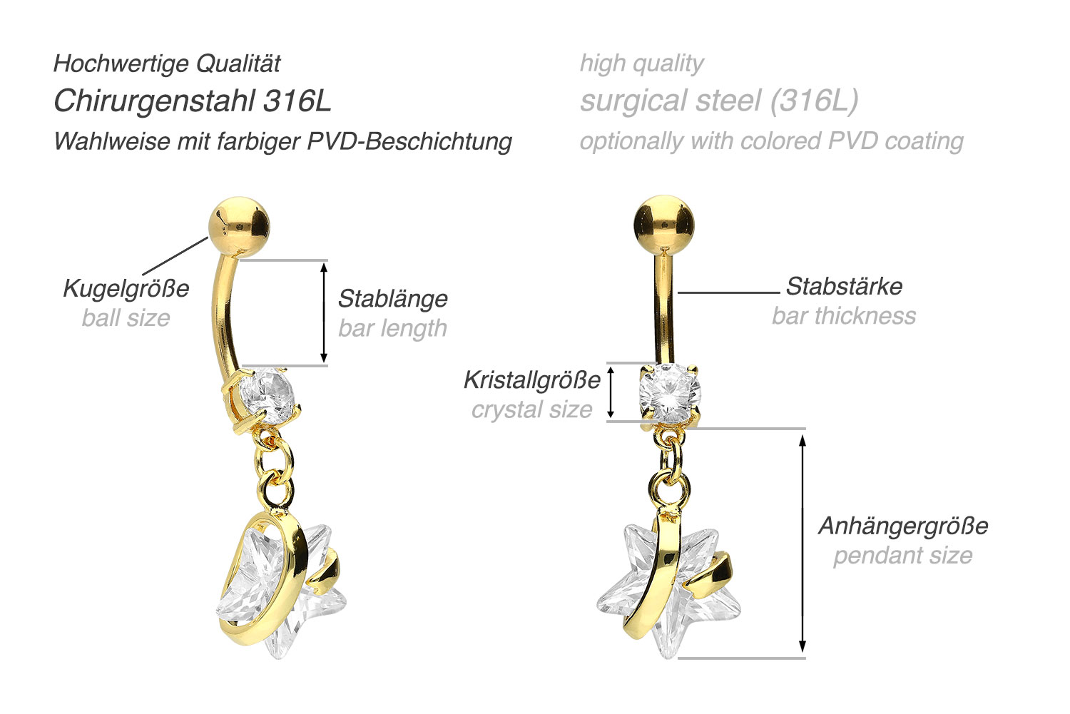 Chirurgenstahl 316L - Bauchnabelpiercing mit Brass-Design Kristallstern