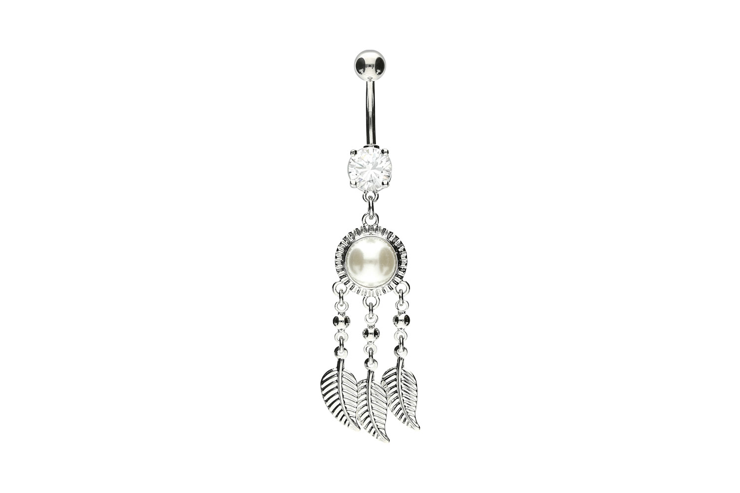 Chirurgenstahl - Bauchnabelpiercing mit Brass-Design Traumfänger + synthetische Perle