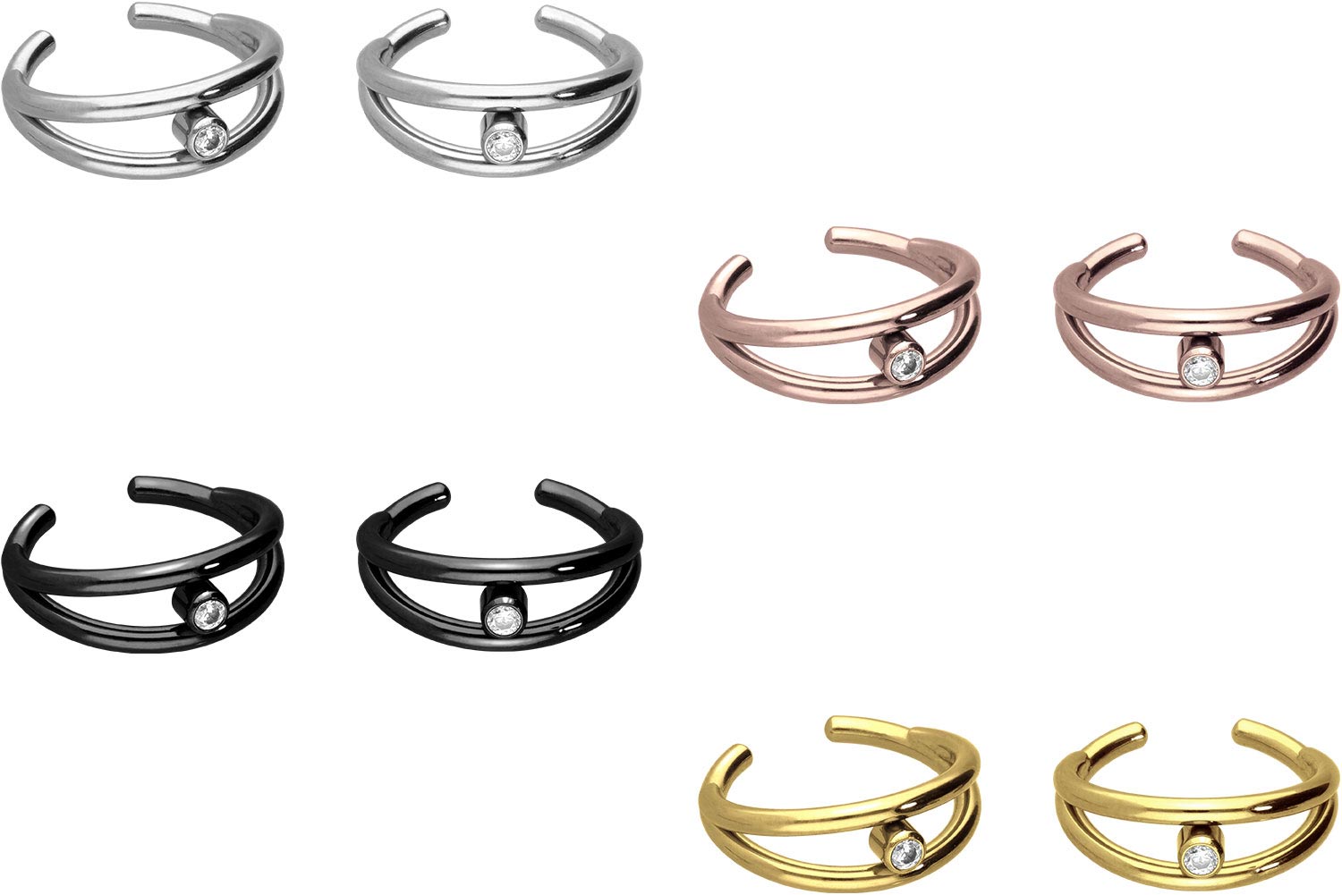 Chirurgenstahl 316L - Fake Ohrring 2 Ringe + Kristall