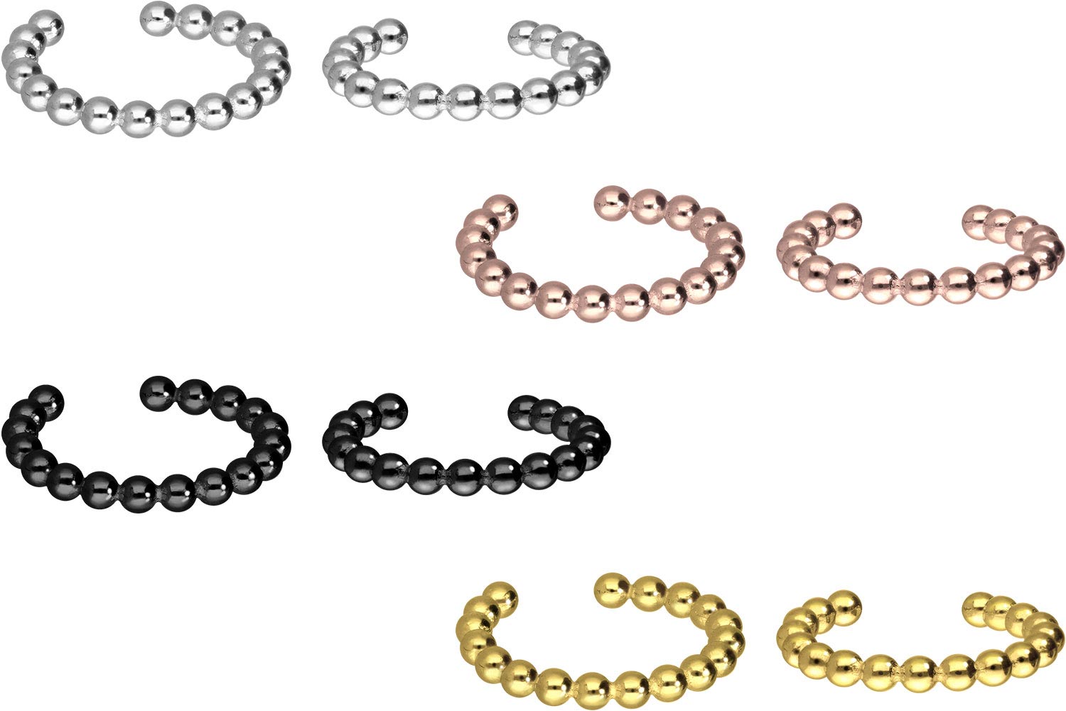 Dieser Fake Ohrring ist aus hochwertigem Chirurgenstahl 316L gefertigt, der je nach Farbwunsch mit einer kratzfesten PVD-Beschichtung versehen ist. Zu den Materialeigenschaften von Chirurgenstahl gehören neben der hohen Qualität auch ebene Beschaffenheit und Beständigkeit. Dank des schlichten und zeitlos schönen Designs, welches an Kugeln erinnert, eignet sich dieser Fake Ohrring wunderbar als Alltagsbegleiter. Durch sanftes Biegen lässt sich dieses Piercing optimal am Ohr befestigen. Außerdem hat es eine Stabstärke von 1,7 mm und ist mit einem Innendurchmesser von 10 mm erhältlich.