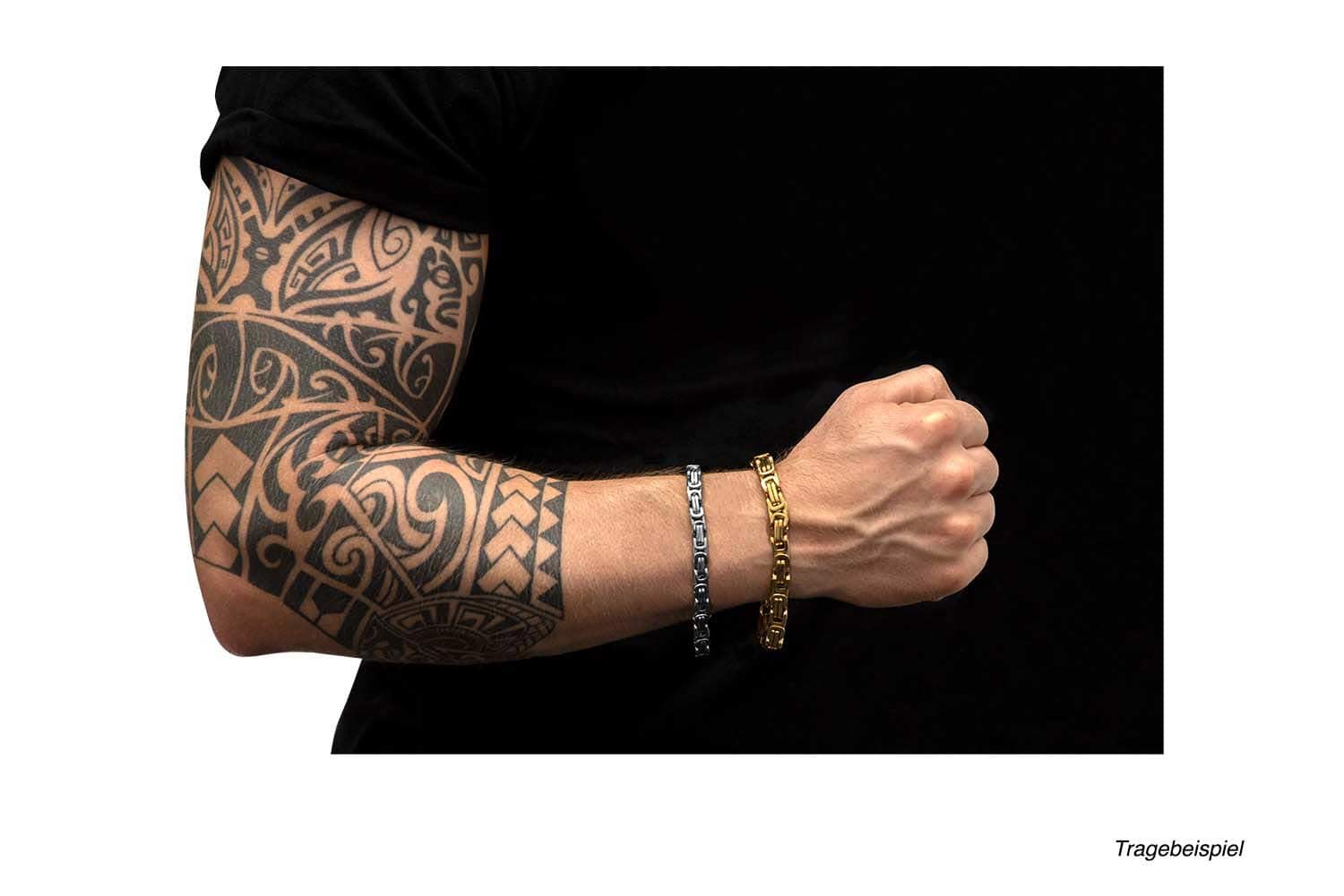 Ein klassisches Königsarmband aus hochwertigem Chirurgenstahl 316L, das insbesondere durch seine zeitlos schöne Optik zu begeistern weiß. Diese einmalige Ästhetik wird durch die hochglanzpolierte Oberfläche zusätzlich betont und sorgt so für ein edles Finish. Dank des Karabinerverschlusses, der ebenfalls aus Chirurgenstahl 316L gefertigt ist, lässt sich das Armband leicht öffnen und schließen. Das Material gilt zudem als formstabil, kratzfest und korrosionsbeständig. So wird das atemberaubend schöne Armband zu einem wunderbaren Alltagsbegleiter.