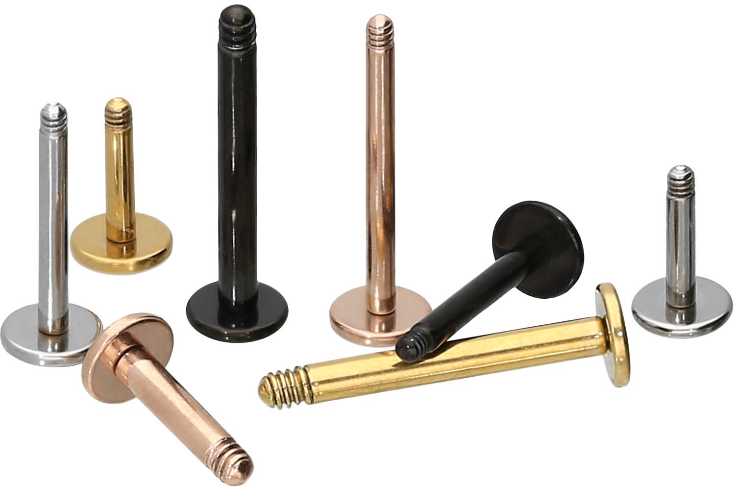 Farbe nach Wahl, die durch die Hochglanzpolitur zusätzlich veredelt wird. Das Labret verfügt über eine Stabstärke von entweder 1,2 oder