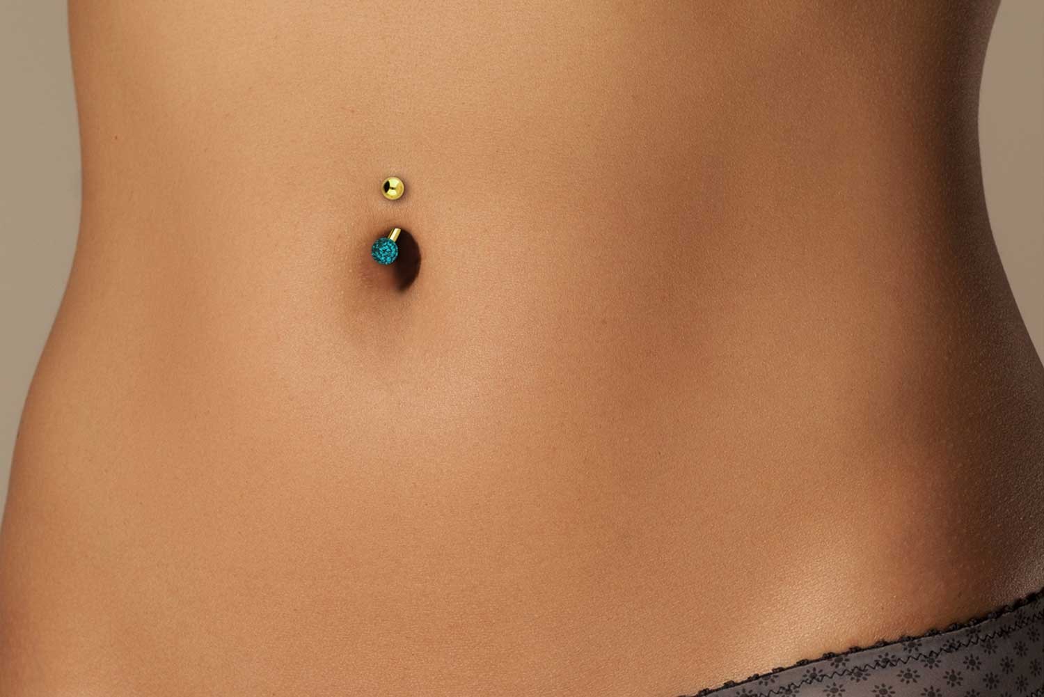 Der Stab und die obere Kugel dieses wunderschönen Bauchnabelpiercings
