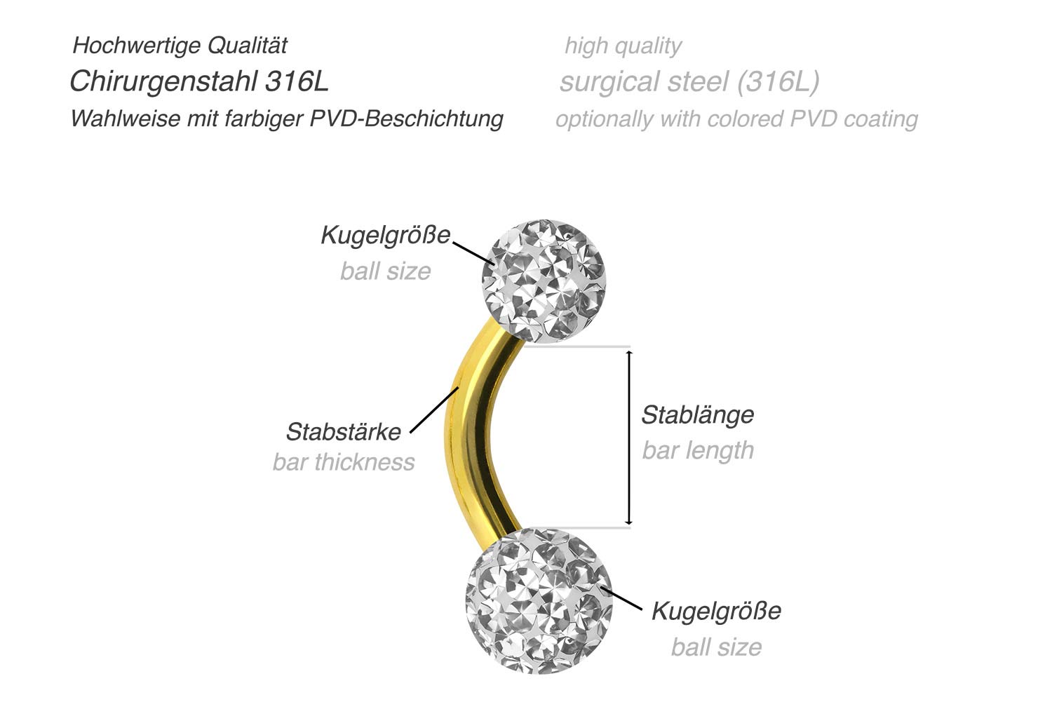 Chirurgenstahl 316L - Mini Bananabell Epoxy-Kugeln