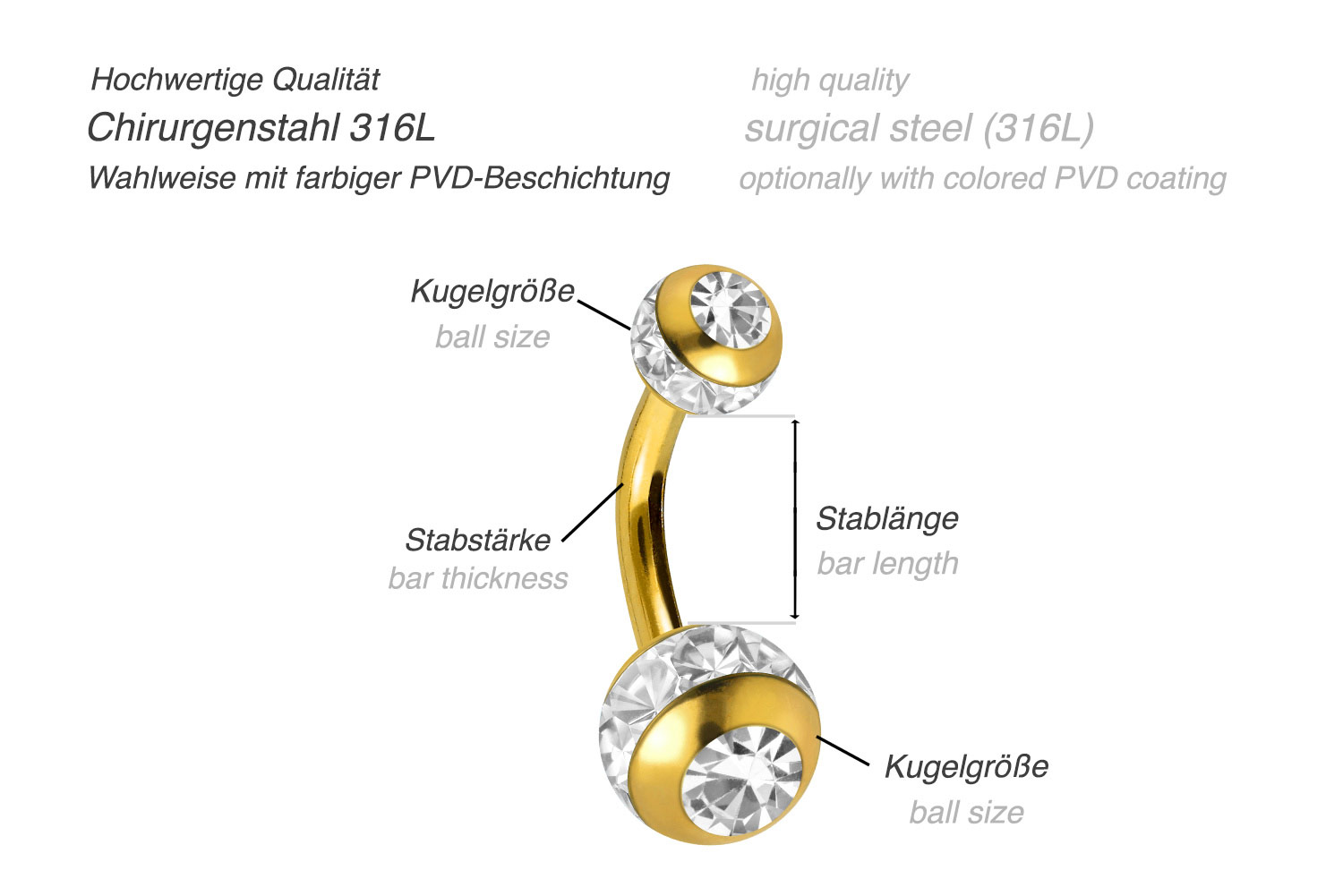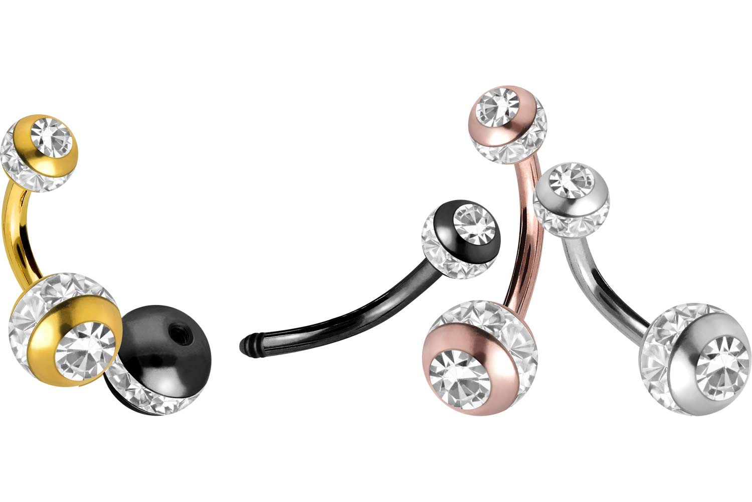 Chirurgenstahl Mini Bananabell EPOXY-RING-KUGELN + KRISTALLE