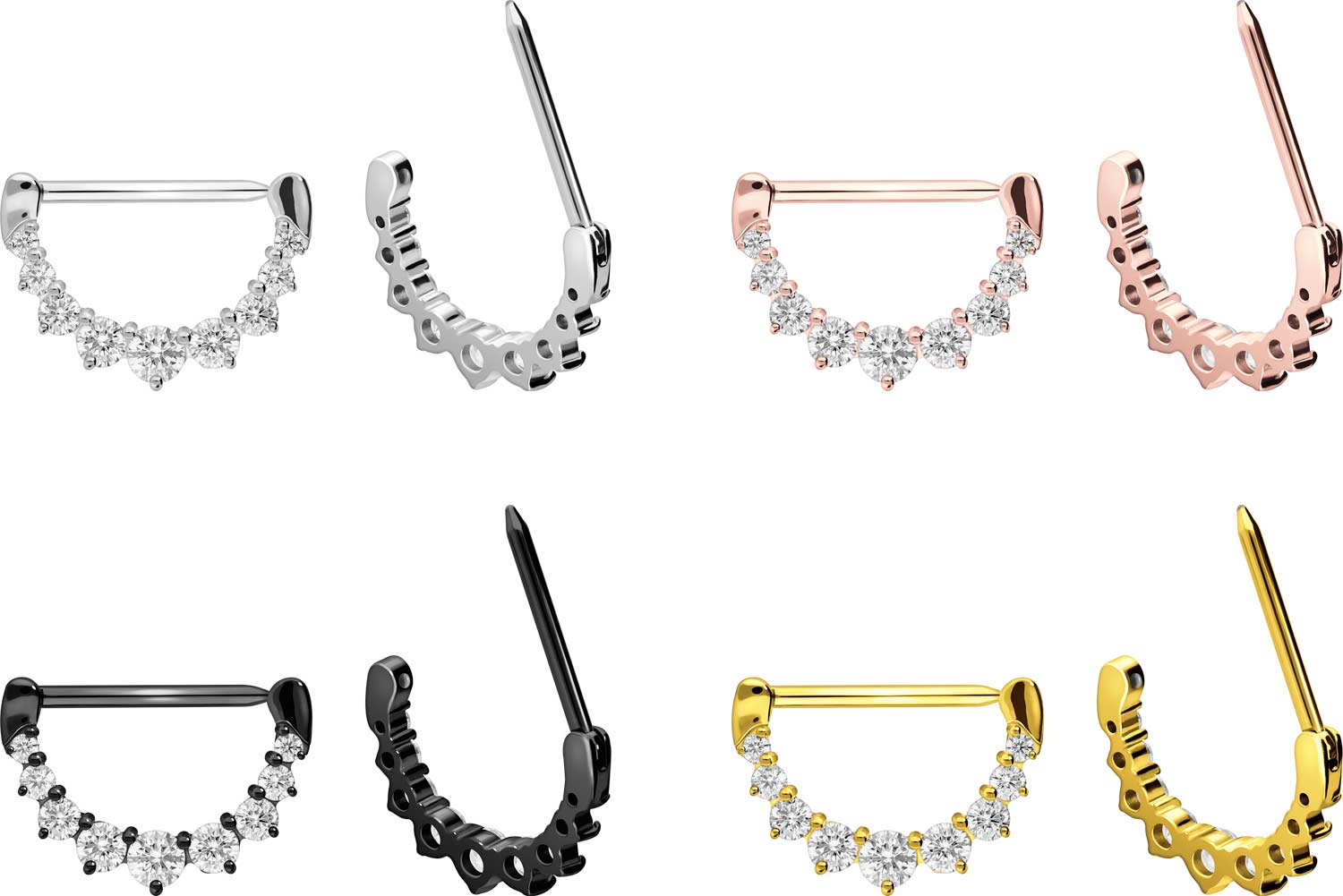Chirurgenstahl 316L - Nippelpiercing Clicker 9 Kristalle