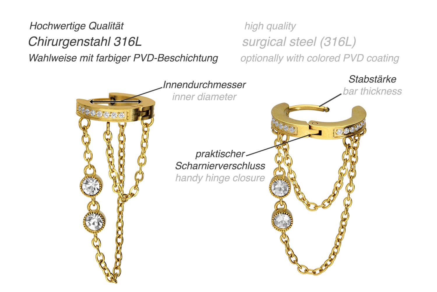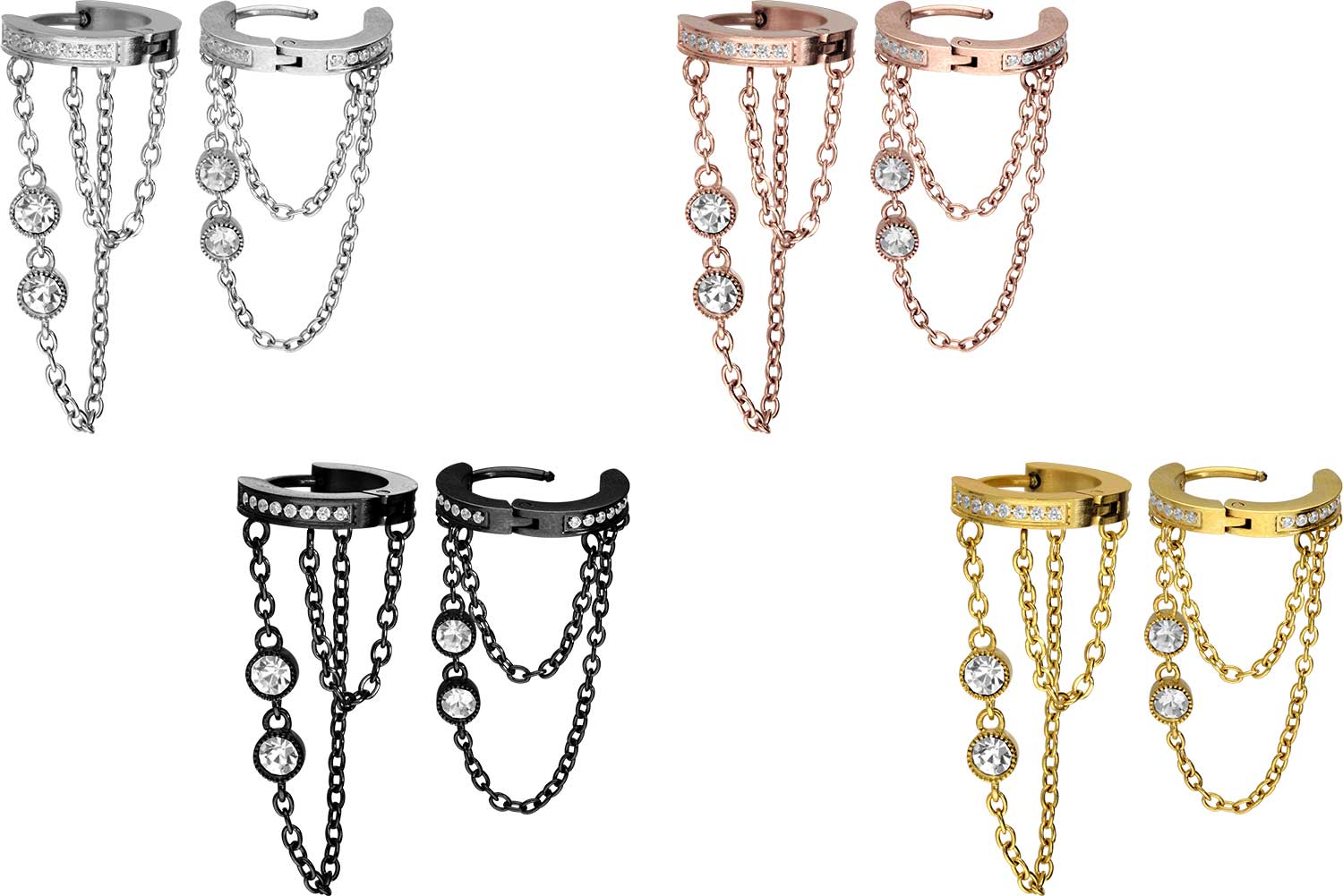 Chirurgenstahl 316L – Ohrclicker Ketten + Kristalle
