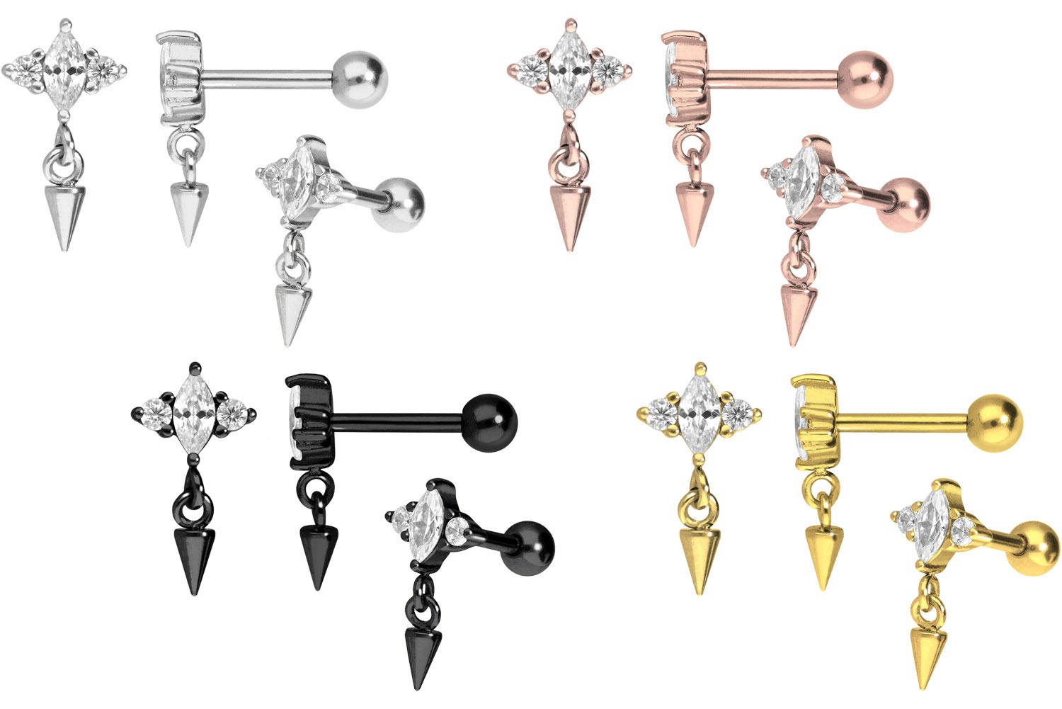 Chirurgenstahl Ohrpiercing EINGEFASSTE KRISTALLE + SPITZE