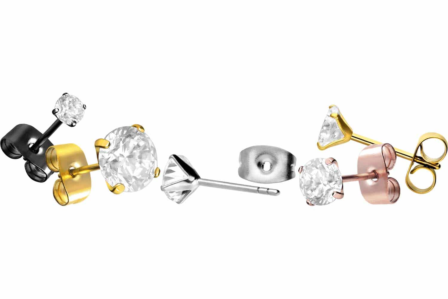 Chirurgenstahl 316L - Ohrstecker mit eingefasstem Kristall