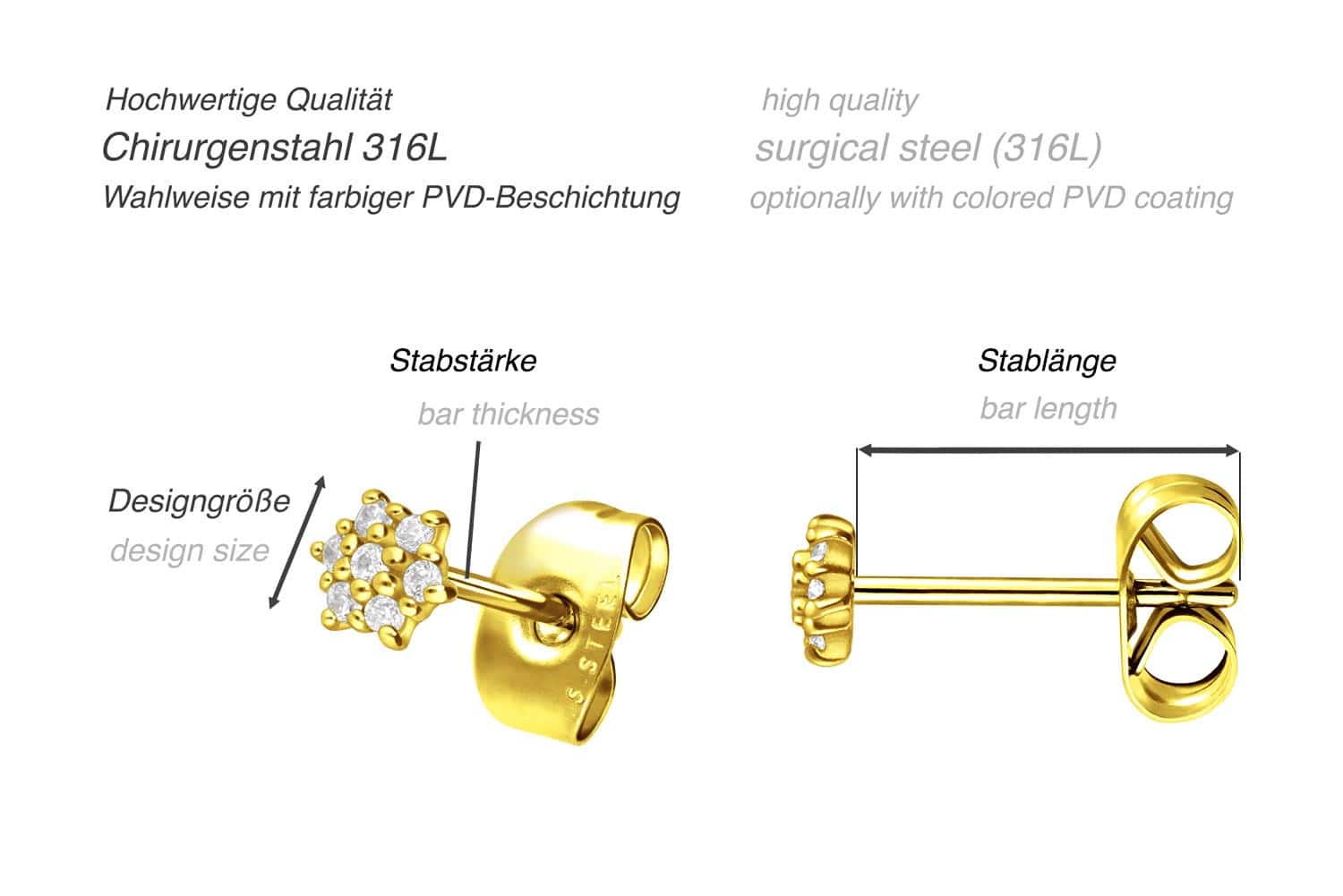Chirurgenstahl 316L - Ohrstecker Kristallblume