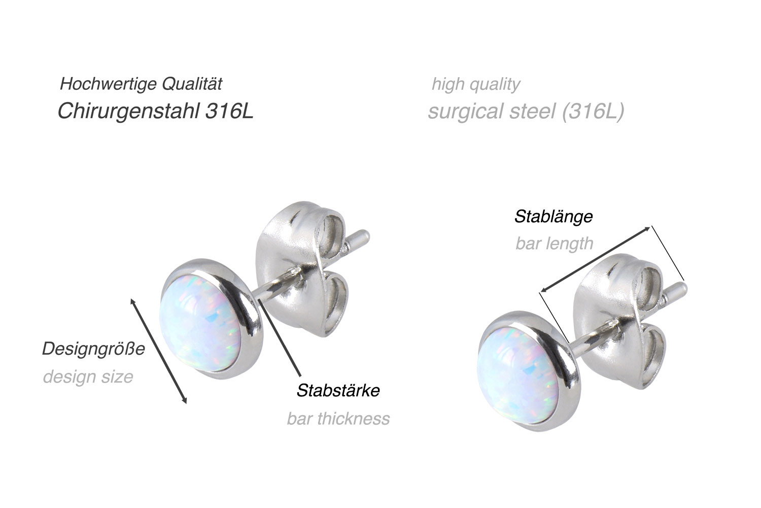 Material: Chirurgenstahl 316L / synthetischer Opal