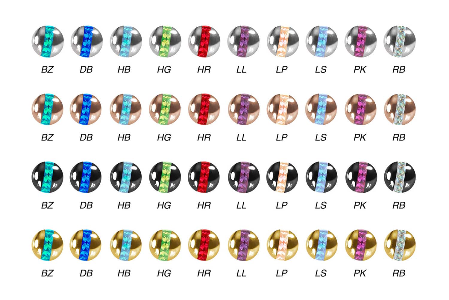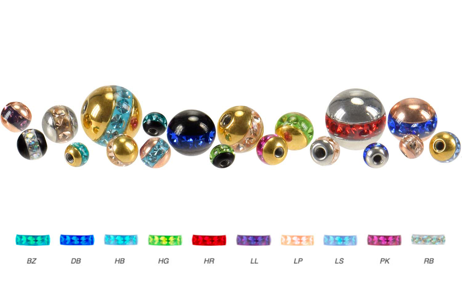 Diese einzigartige Schraubkugel besteht aus hochwertigem Chirurgenstahl 316L, der bekanntermaßen über Materialeigenschaften wie hohe Beständigkeit und ebene Beschaffenheit verfügt. Falls gewünscht, sorgt eine kratzfeste PVD-Beschichtung für eine kräftige Farbe nach Wahl, die durch die Hochglanzpolitur zusätzlich veredelt wird. In der Mitte der Kugel befindet sich ein Ring aus funkelnden Kristallen, die zum Schutz mit einer klaren Epoxidharz-Schicht überzogen sind. Erhältlich ist das Schmuckstück in den unten aufgeführten Gewindestärken und Größen.