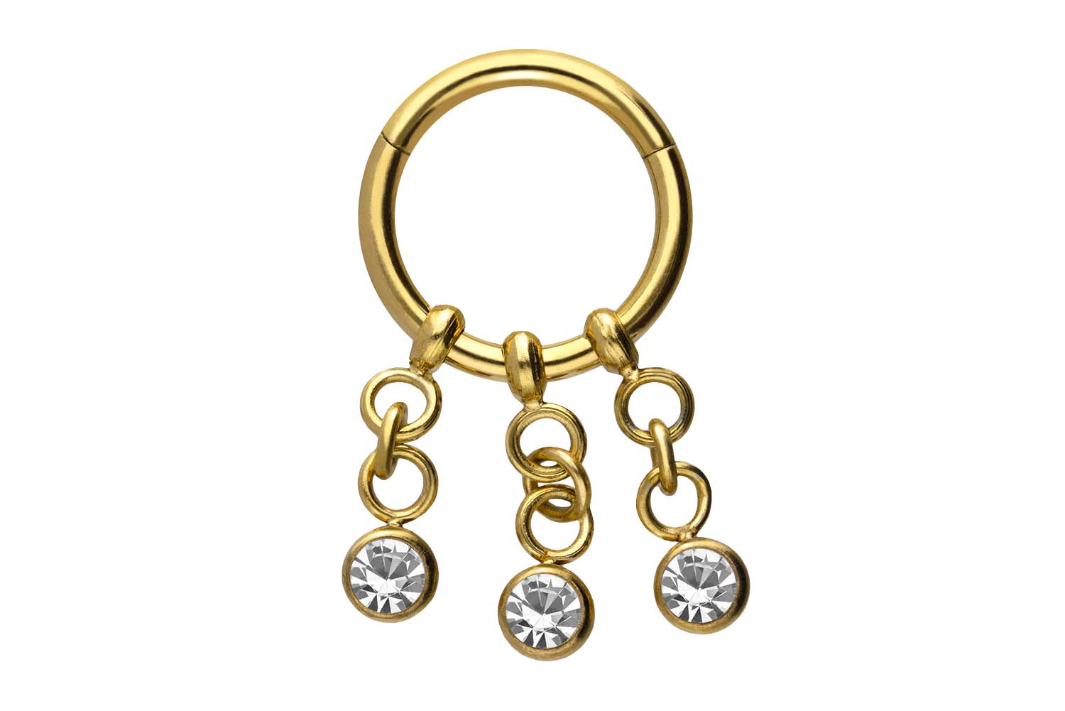Chirurgenstahl 316L - Segmentring Clicker 3 Ketten + Kristalle