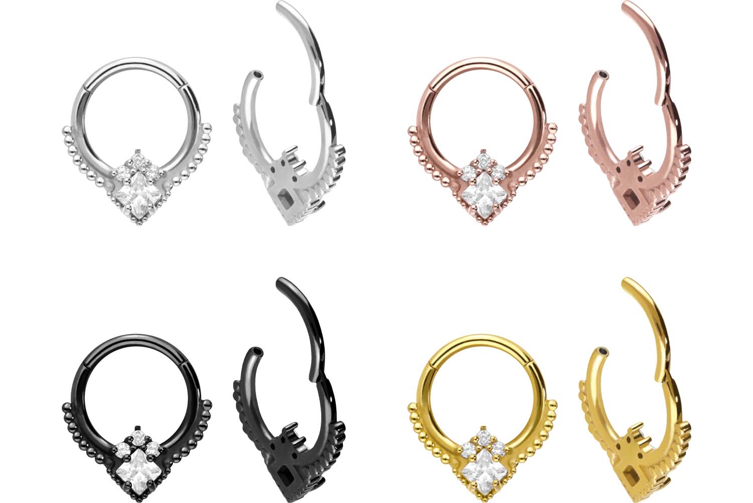 Chirurgenstahl Segmentring Clicker 4 KRISTALLE + KUGELN