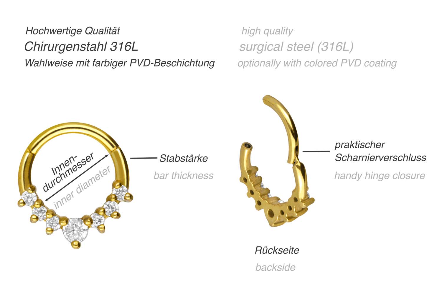 Chirurgenstahl Segmentring Clicker 7 EINGEFASSTE KRISTALLE