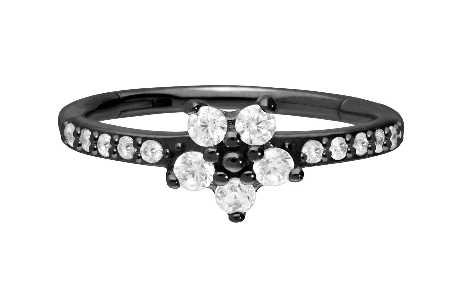 Chirurgenstahl Segmentring Clicker EINGEFASSTE KRISTALLE + KRISTALLBLUME