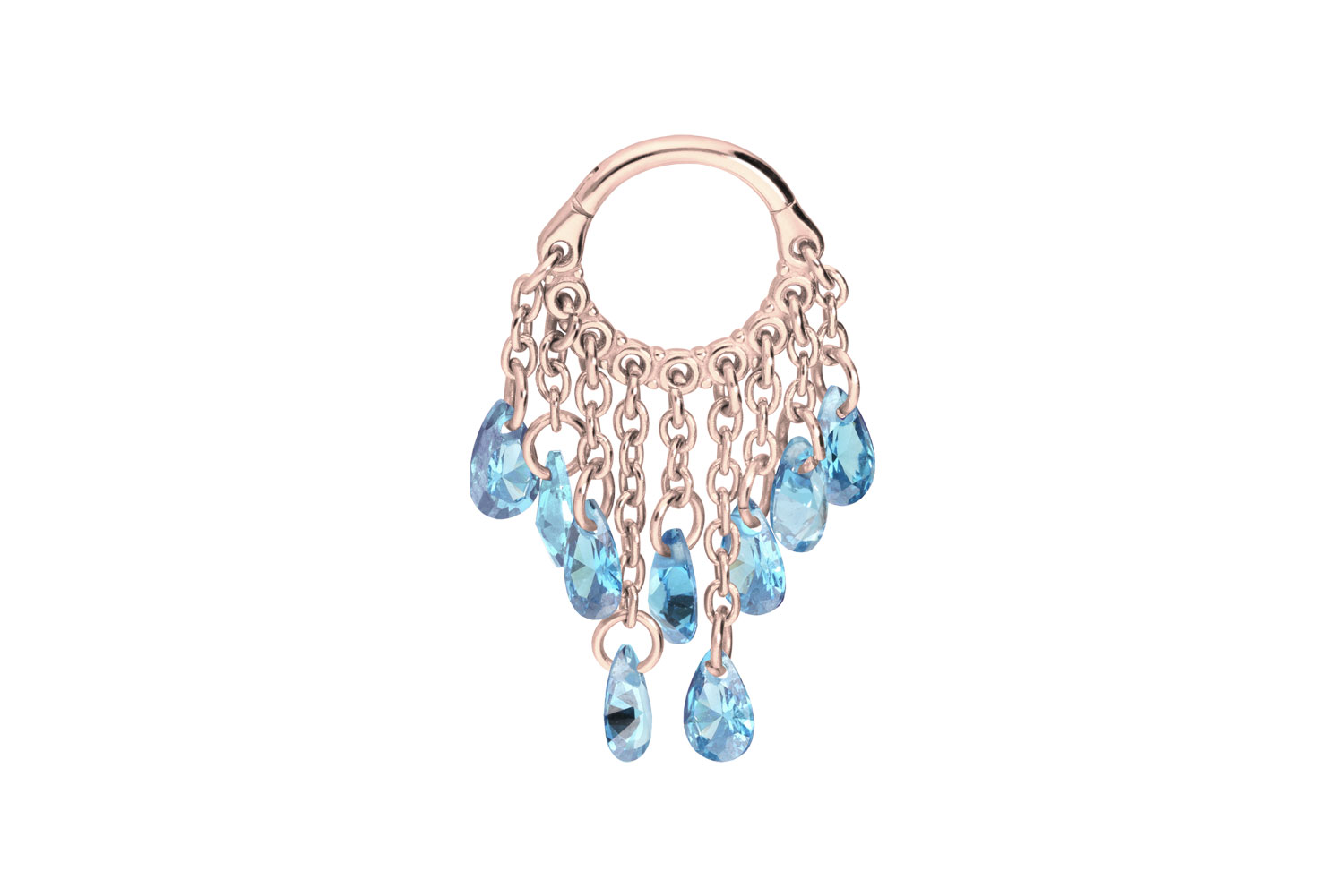 das Piercing mit einer kratzfesten PVD-Beschichtung überzogen. Seinen einzigartigen Charme hat das Schmuckstück dem Design zu verdanken, das aus einem Kettenvorhang mit funkelnden Kristalltropfen besteht. Ob am Ohr, der Nase, oder der Lippe - unsere Clicker sind für die verschiedensten