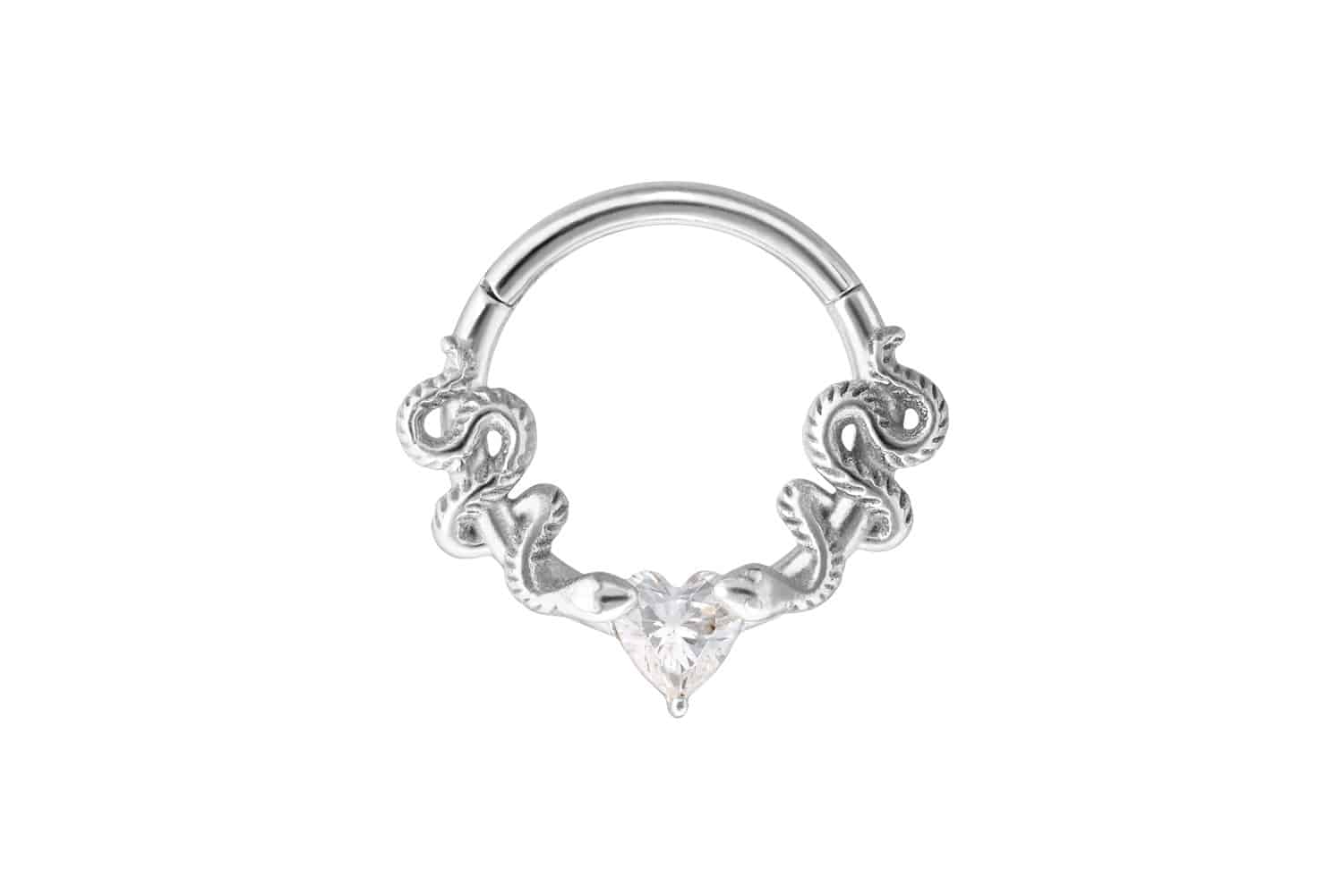 Chirurgenstahl Segmentring Clicker KRISTALLHERZ + 2 SCHLANGEN