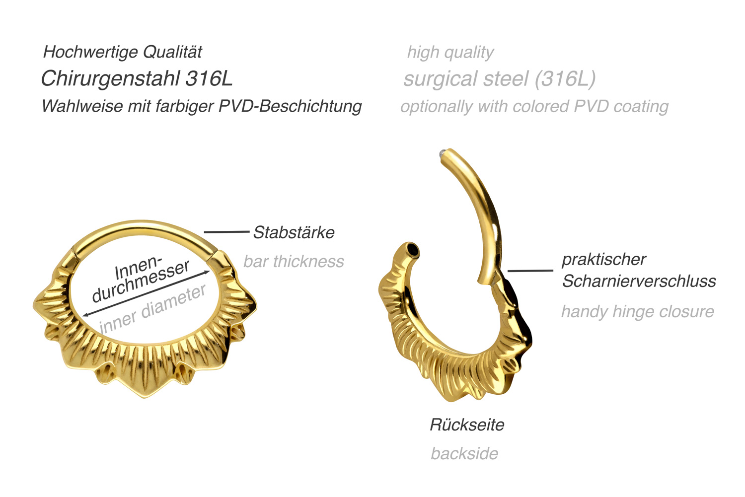 Chirurgenstahl 316L - Segmentring Clicker oval + orientalisches Design