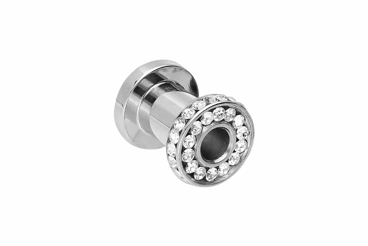 Dieser Tunnel ist komplett aus hochwertigem Chirurgenstahl 316L gefertigt und mit einem Innengewinde versehen. Der vordere Rand ist oben und seitlich mit Kristallen besetzt. Dadurch wird der Tunnel zu einem echten Hingucker. Seine Ränder sorgen für einen guten Halt im Ohr. Das verwendete Material zeichnet sich durch seine besonderen Eigenschaften wie Farbechtheit und Materialbeständigkeit aus. Dieser Artikel ist mit einem Außendurchmesser von 4 / 6 / 8 / 10 und 12 mm erhältlich und wahlweise mit eine schwarzen PVD-Beschichtung versehen.
