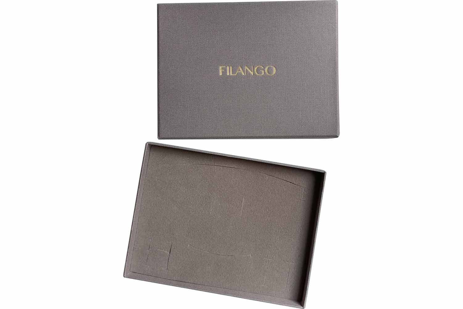 des jeweiligen Schmuckstücks ermöglicht wird. Der äußerlich sichtbare goldfarbene "Filango" Schriftzug lässt zudem das gesamte Erscheinungsbild des Kästchens besonders edel wirken.