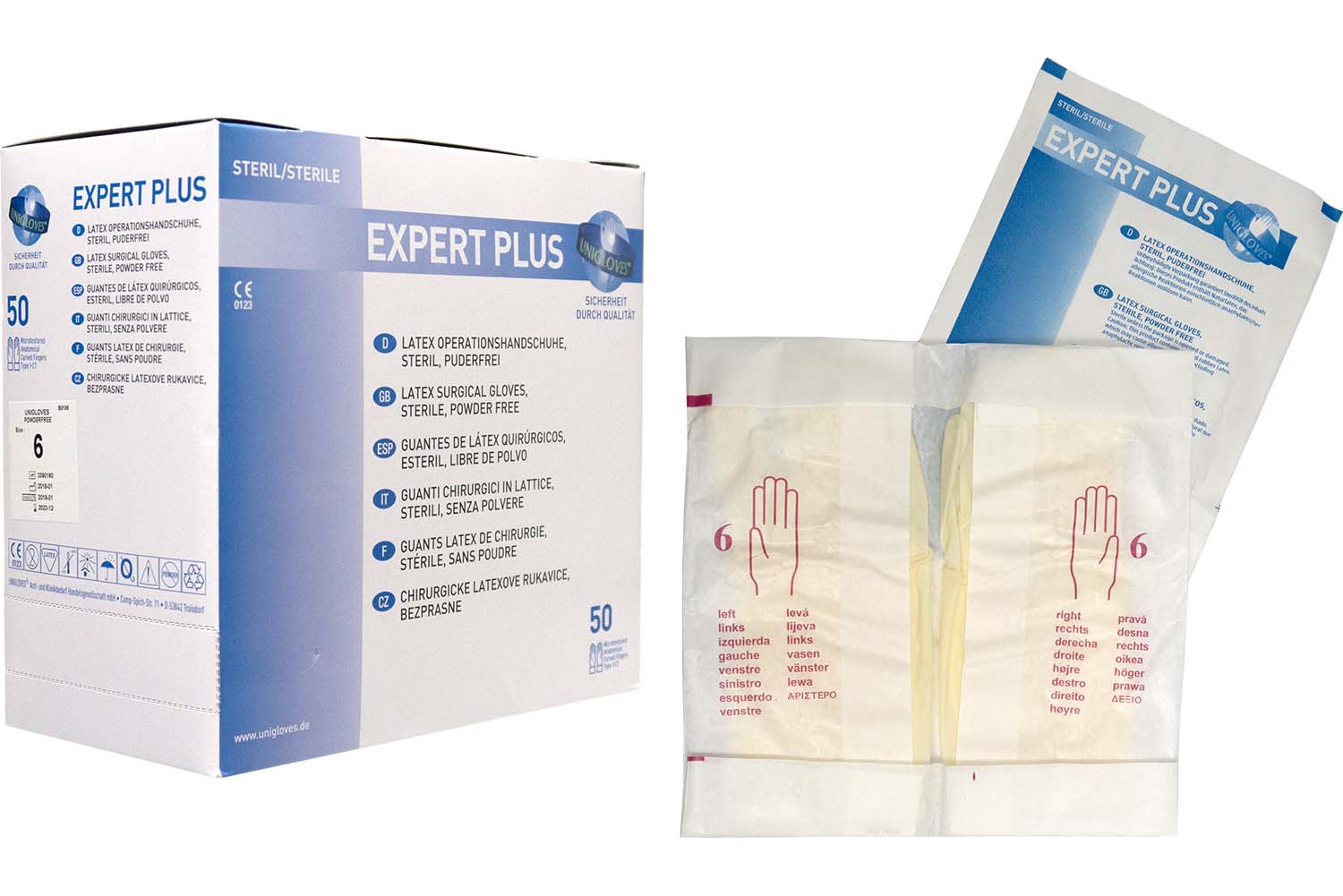Spenderbox mit einem Inhalt von 50 steril verpackten Paaren geliefert. Jeder