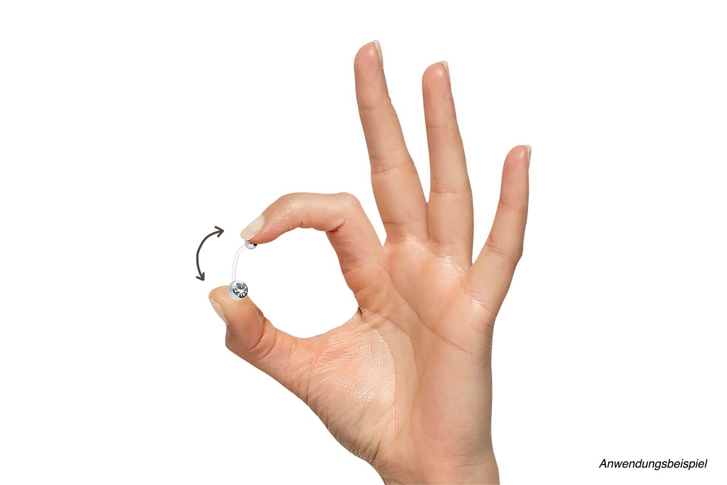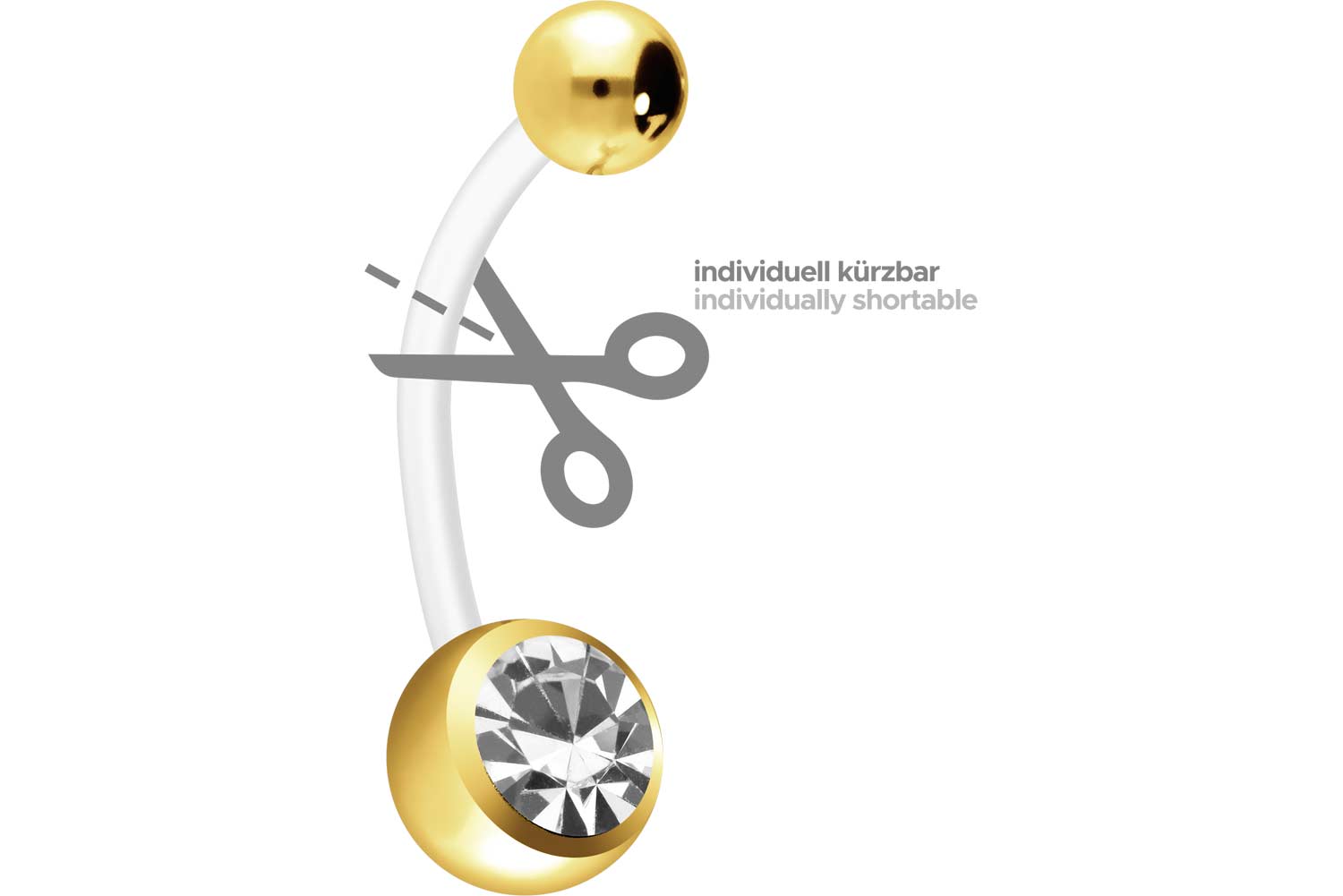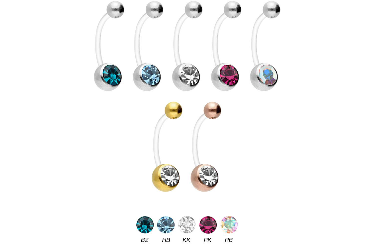 hochwertiger Qualität. PTFE ergänzt all dies um einen weiteren Vorteil: die Flexibilität. Zudem ist die Länge des transparenten Stabes variabel, da sie nach Belieben mit einer gewöhnlichen Haushaltsschere den eigenen Vorstellungen entsprechend angepasst werden kann. Darüber hinaus eignet sich dieses Schmuckstück auch für den Einsatz als Schwangerschaftspiercing.