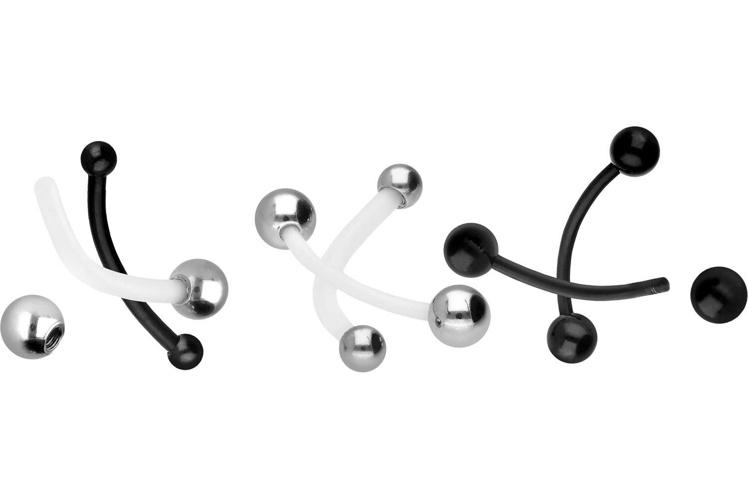 Diese klassische Banane besteht hauptsächlich aus hochwertigem PTFE, das ebenfalls unter dem Handelsnamen Teflon bekannt ist. Nur die Kugeln wurden anstelle dessen aus Titan gefertigt. Beide Materialien verfügen neben ihrer exzellenten Qualität auch über andere nützliche Eigenschaften wie etwa besonders gute Hautverträglichkeit und Beständigkeit. PTFE betreffend kommen Flexibilität und Anpassungsfähigkeit hinzu. Letztere macht sich im Falle dieses Artikels dadurch bemerkbar, dass sich der Stab je nach Belieben mit einer gewöhnlichen Haushaltsschere kürzen lässt. Anschließend kann mithilfe der Kugel ein neues Gewinde eingedreht werden, sodass weiterhin ein optimaler Halt gewährleistet wird. Die Banane verfügt entweder über eine Stabstärke von 1,2 oder 1,6 mm und mit einer Stablänge von 12 mm  erhältlich.