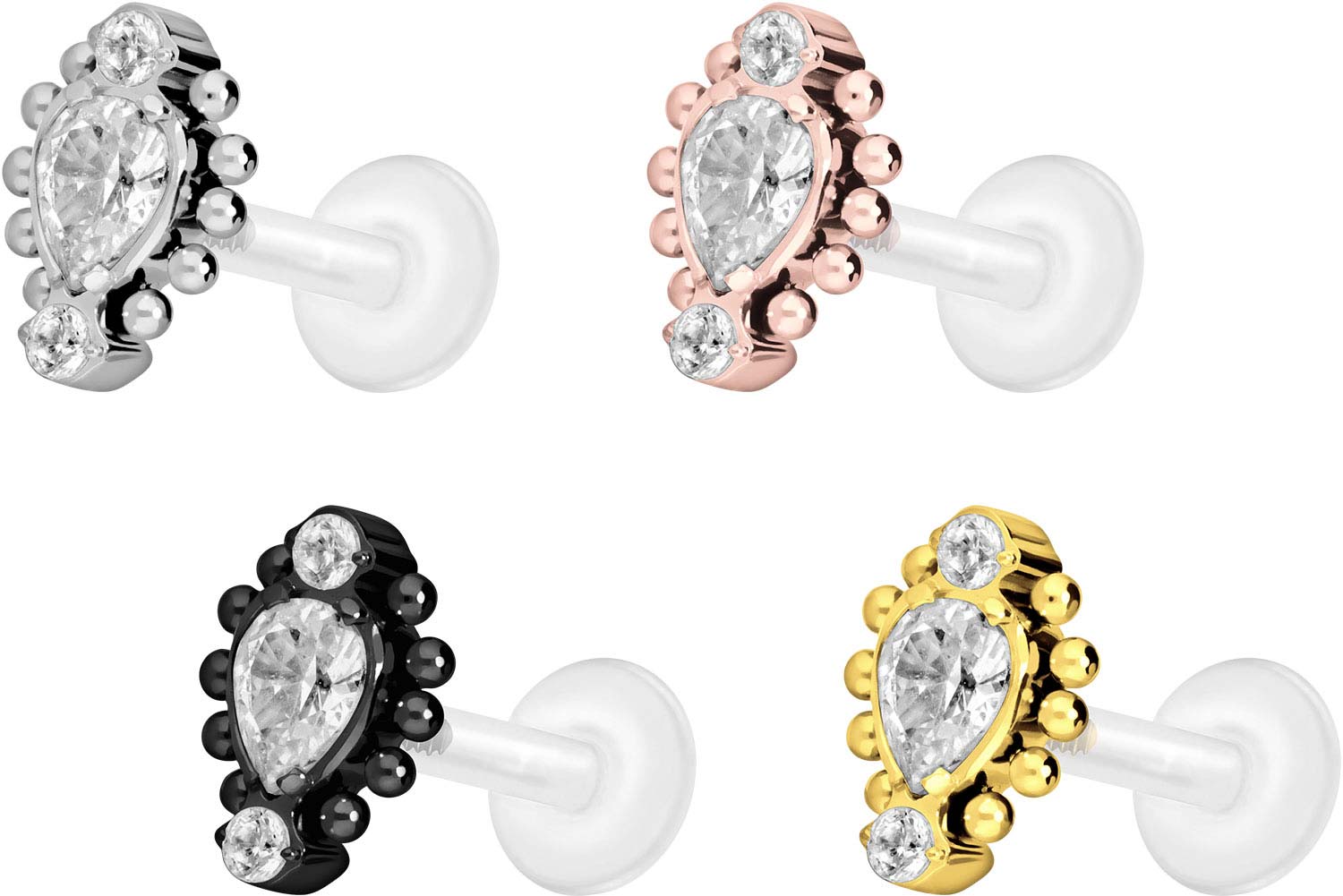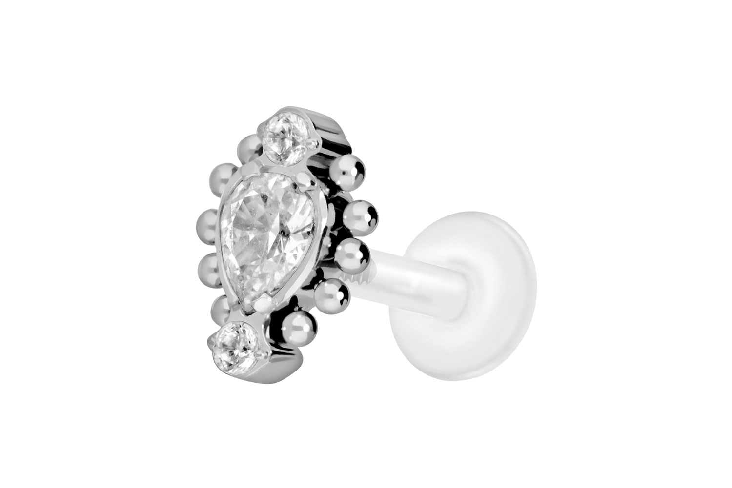 PTFE - Labret mit Innengewinde + Titan-Aufsatz 3 eingefasste Kristalle + Kugeln