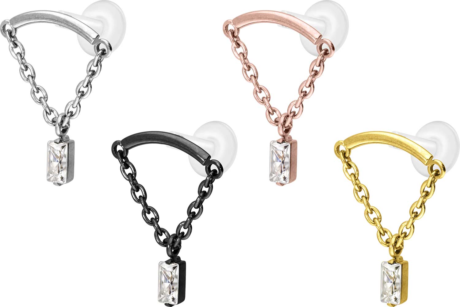 PTFE - Labret mit Innengewinde + Titan-Aufsatz Bogen + Kette + Kristallrechteck
