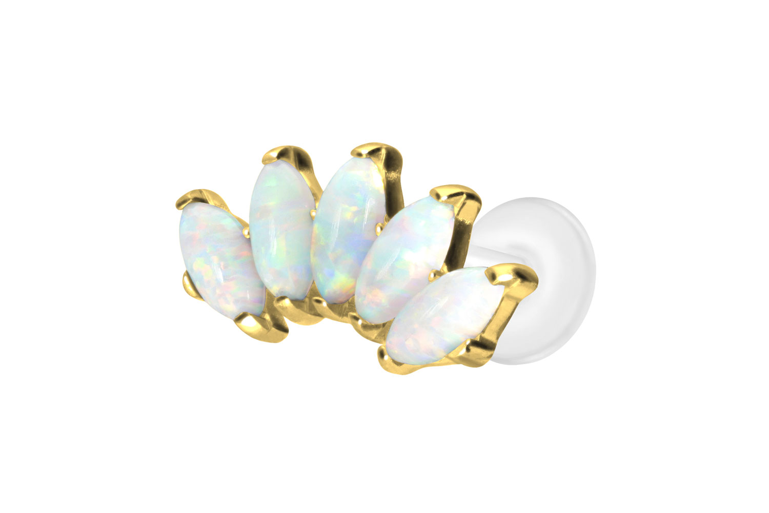 PTFE Labret mit Innengewinde + Titan-Aufsatz BOGEN + SYNTHETISCHE OPALE