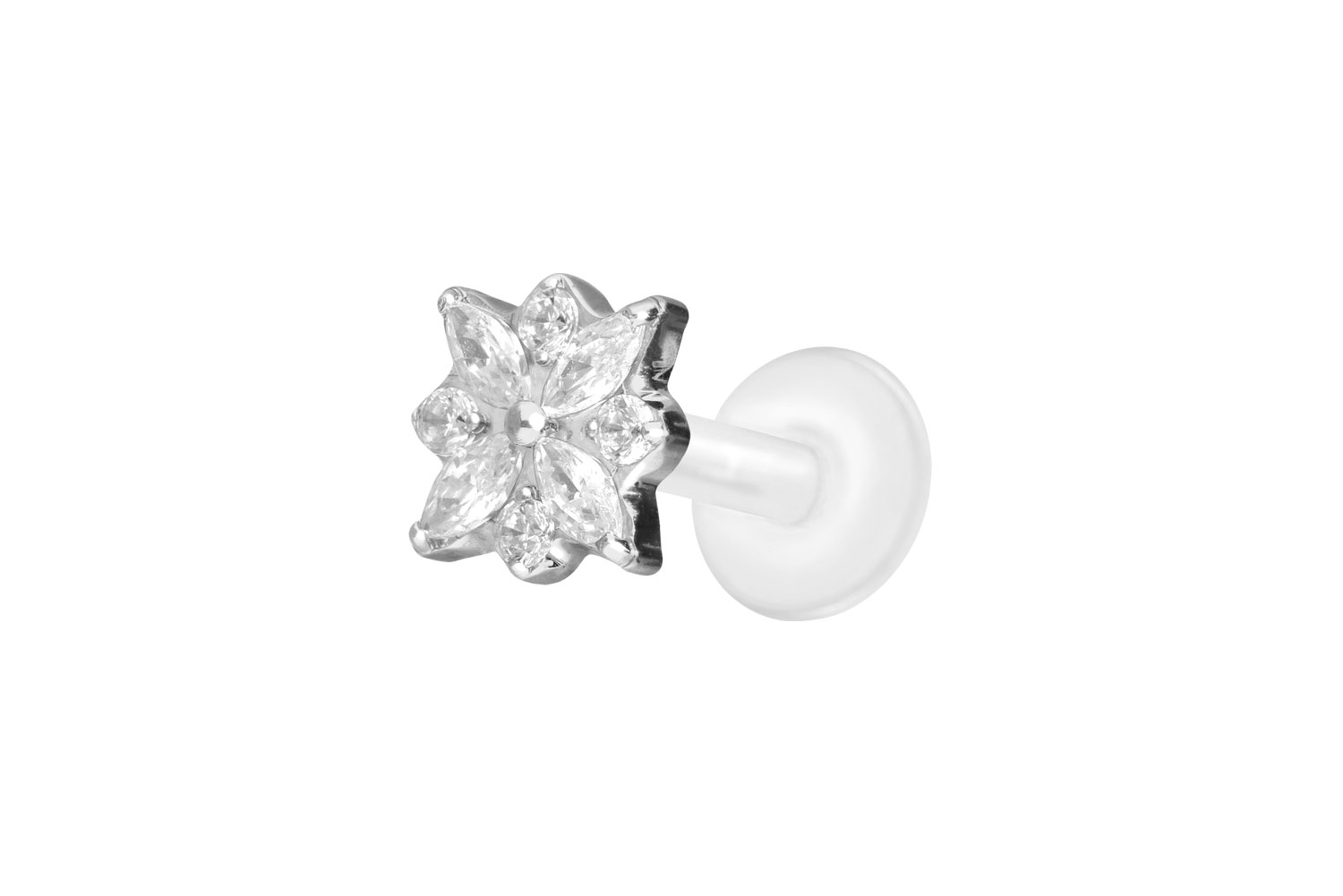 PTFE - Labret mit Innengewinde + Titan-Aufsatz Kristallblume