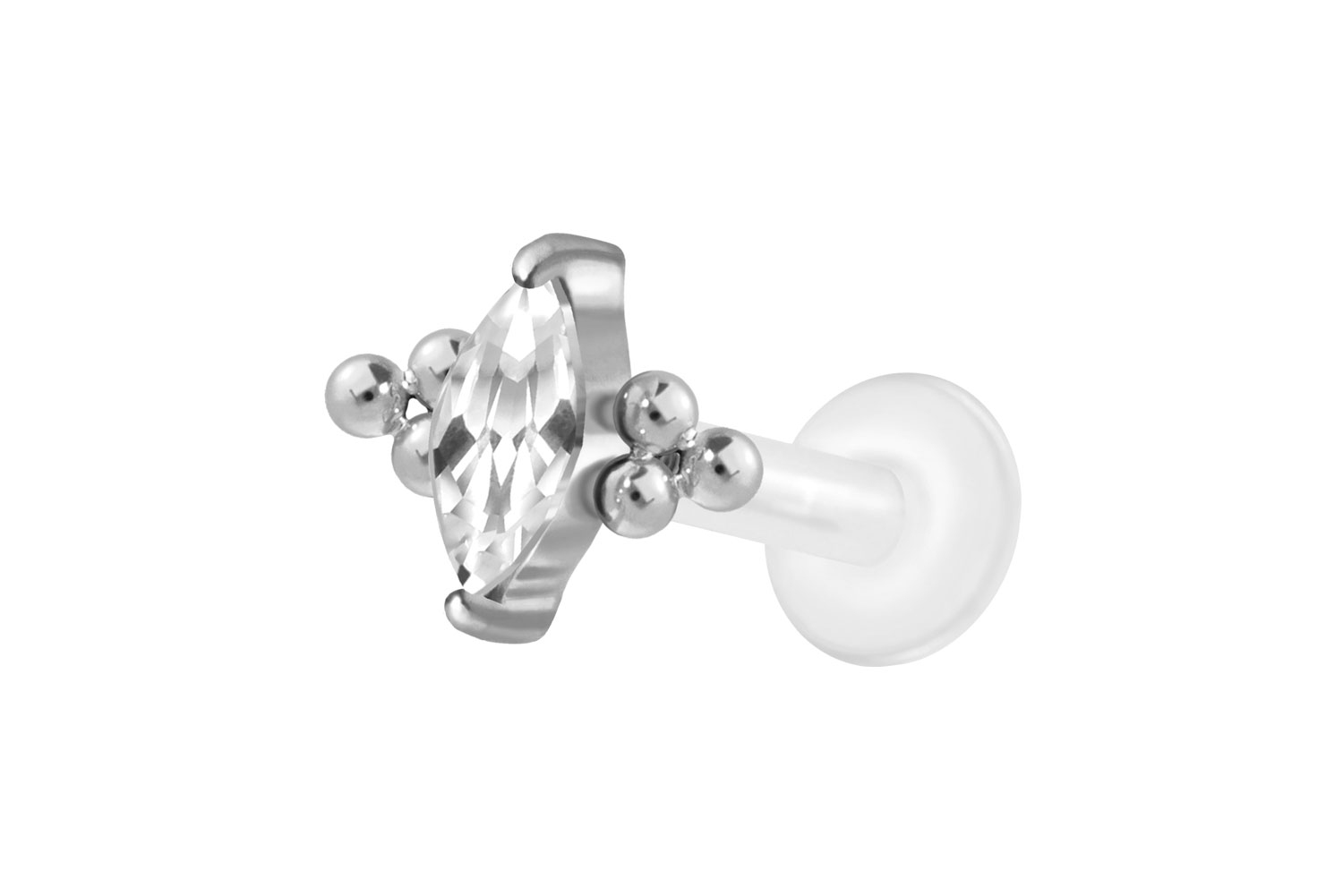 PTFE Labret mit Innengewinde + Titan-Aufsatz KRISTALLTROPFEN + 6 KUGELN