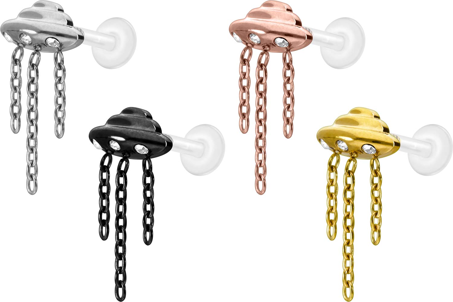 PTFE Labret mit Innengewinde + Titan-Aufsatz UFO + KETTEN + KRISTALLE