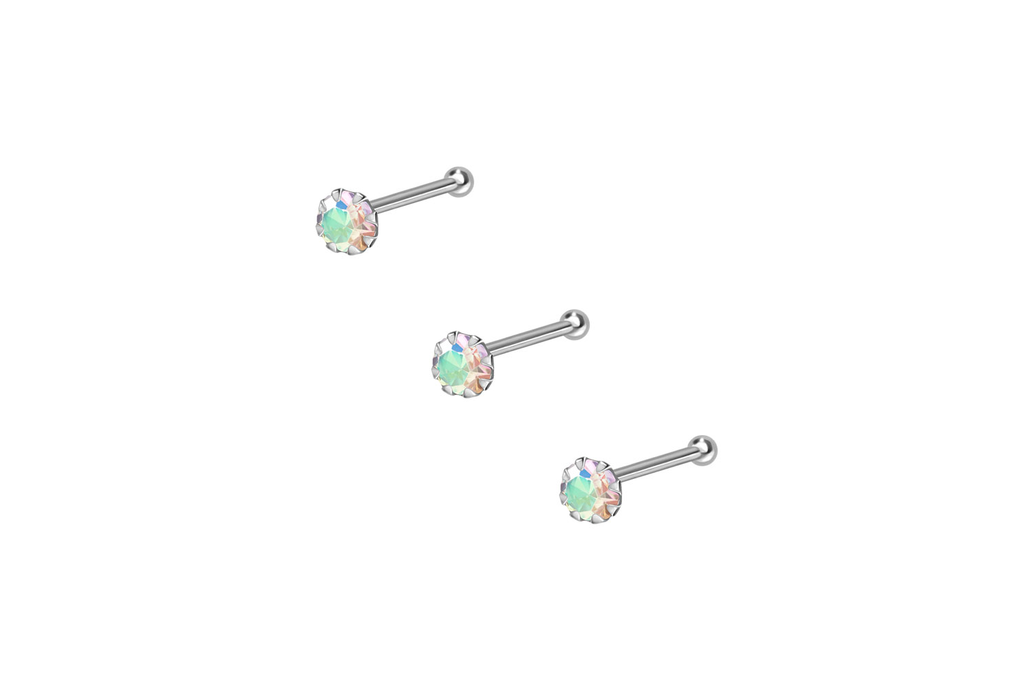 angenehmen Tragekomfort. Als besonderes Highlight ziert jeden Nasenstecker jeweils ein runder Kristall mit Fassung, dessen auswählbare Farben