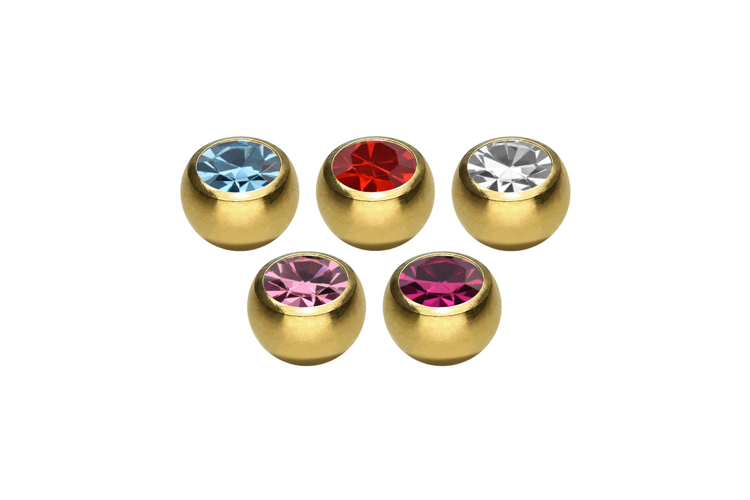 Das Set besteht aus entweder drei oder fünf Schraubkugeln. Diese sind je mit einem funkelndem Kristall besetzt und wurden aus hochwertigem Chirurgenstahl 316L gefertigt, der unter anderem über nützliche Materialeigenschaften wie etwa ebene Beschaffenheit und hohe Beständigkeit verfügt. Wahlweise sind sie mit einer kratzfesten PVD-Beschichtung versehen, die ihnen eine kräftige Farbe verleiht. Aufgrund des entweder 1,2 oder 1,6 mm starken Innengewindes sind diese Schraubkugeln mit vielen anderen Artikeln aus unserem vielseitigen Sortiment kompatibel. Sie sind zudem in den unten aufgeführten Größen und Kristallfarben erhältlich.