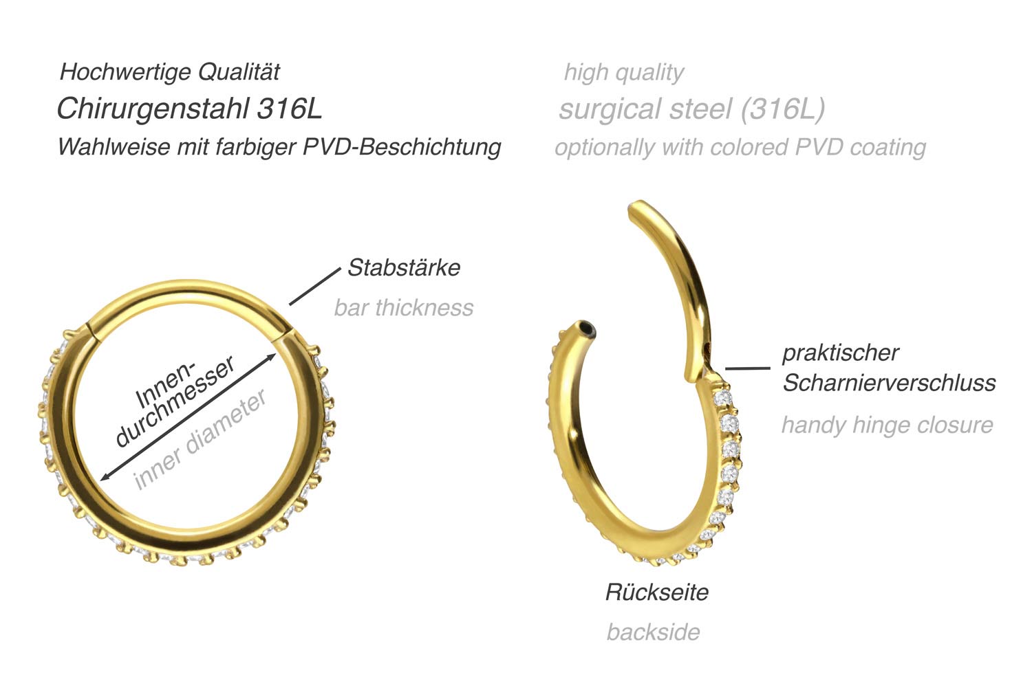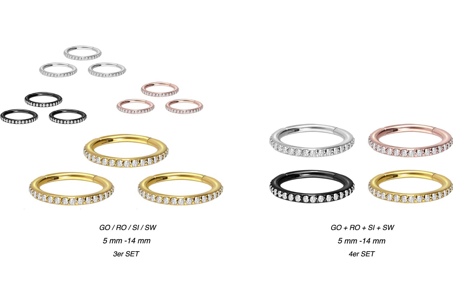 SET Chirurgenstahl Segmentring Clicker EINGEFASSTE KRISTALLE ++Neues Design++