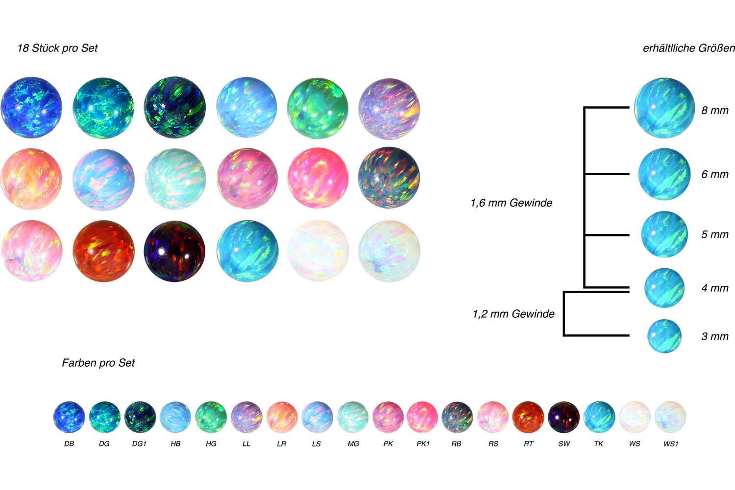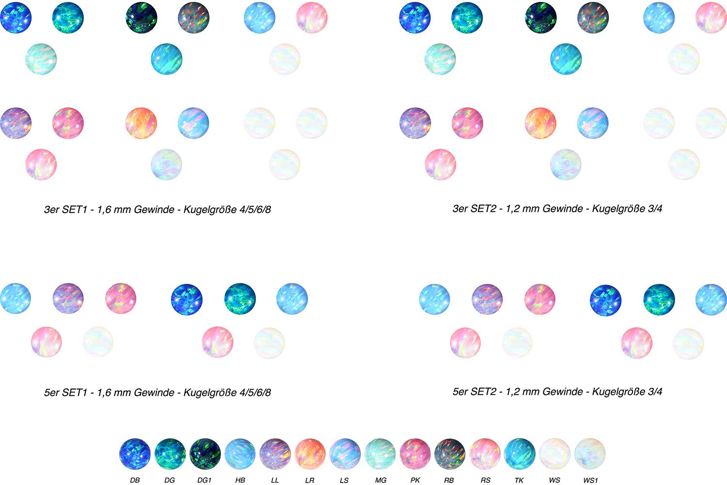 SET Synthetischer Opal Schraubkugel mit Chirurgenstahl-Gewinde