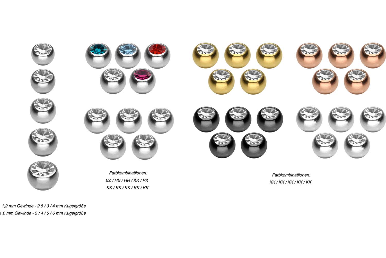 Kugelgröße (bei 1,2 mm Gewinde): 2,5 / 3 / 4 mm