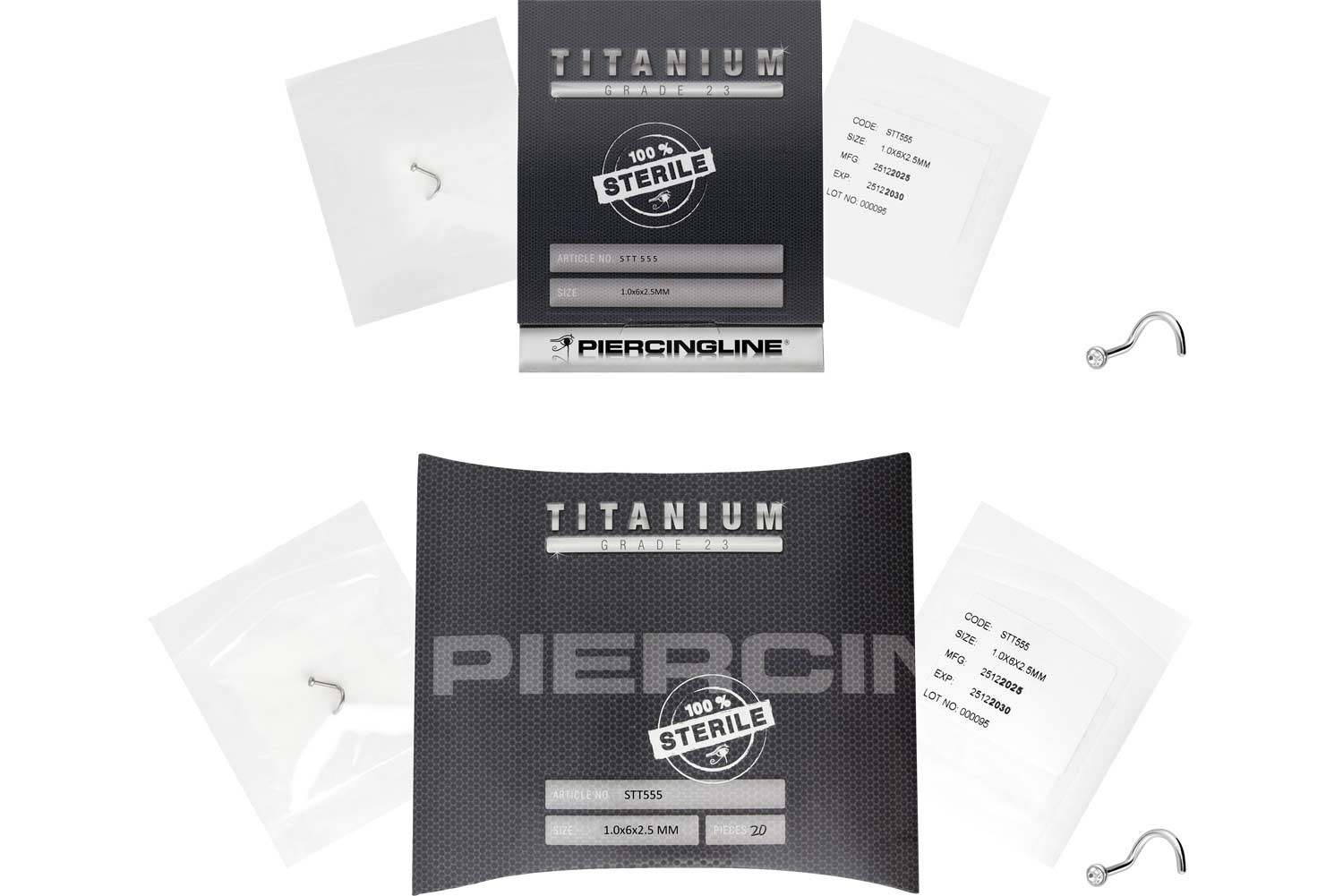 Dieser stilvolle Nasenstecker ist wahlweise einzeln oder im 20er Set erhältlich. Er besteht aus hochwertigem Titan, das bekanntermaßen über Materialeigenschaften wie gute Hautverträglichkeit und hohe Beständigkeit verfügt. Die flache Kristalldisc lässt dieses Schmuckstück in voller Pracht erstrahlen, während die Spiralform für einen besseren Halt in der Nase sorgt. Seine Stabstärke beträgt stets 1 mm und seine Stablänge 6 mm. Eine weitere Besonderheit liegt darin, dass jedes einzelne dieser Piercings zu 100 % steril verpackt ist. Ungeöffnet behält es diesen Zustand bis zu 5 Jahre bei.