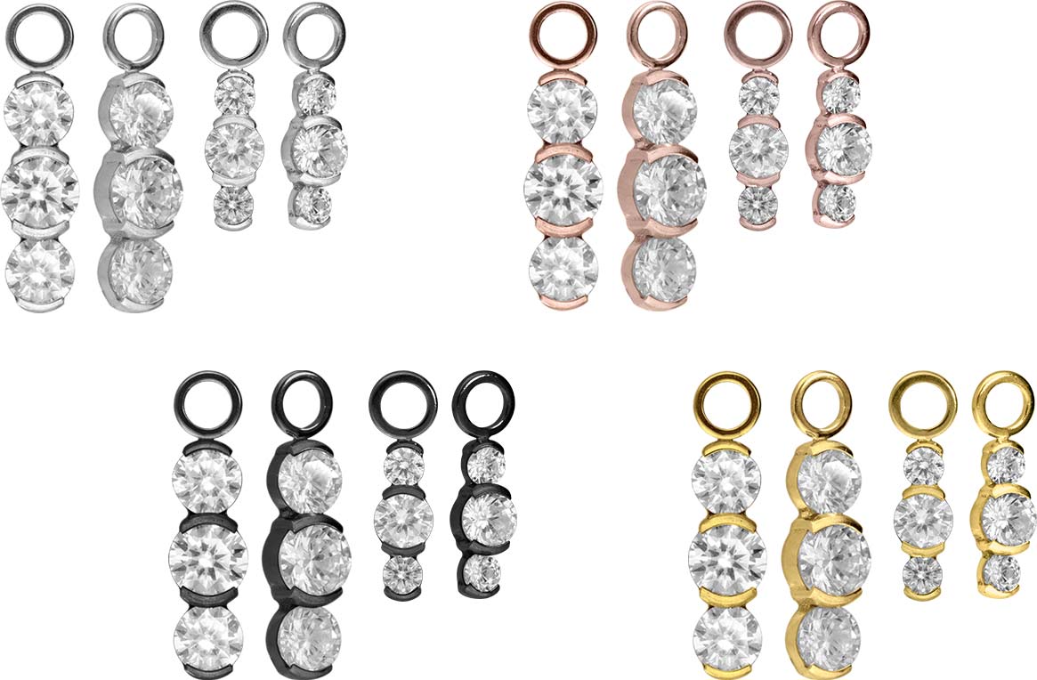 Varianten mit farbiger PVD-Beschichtung gewährleistet wird. So wird dieser entzückende Anhänger in Form von drei eingefassten Kristallen  zu einer hervorragenden Ergänzung für jeden entsprechenden