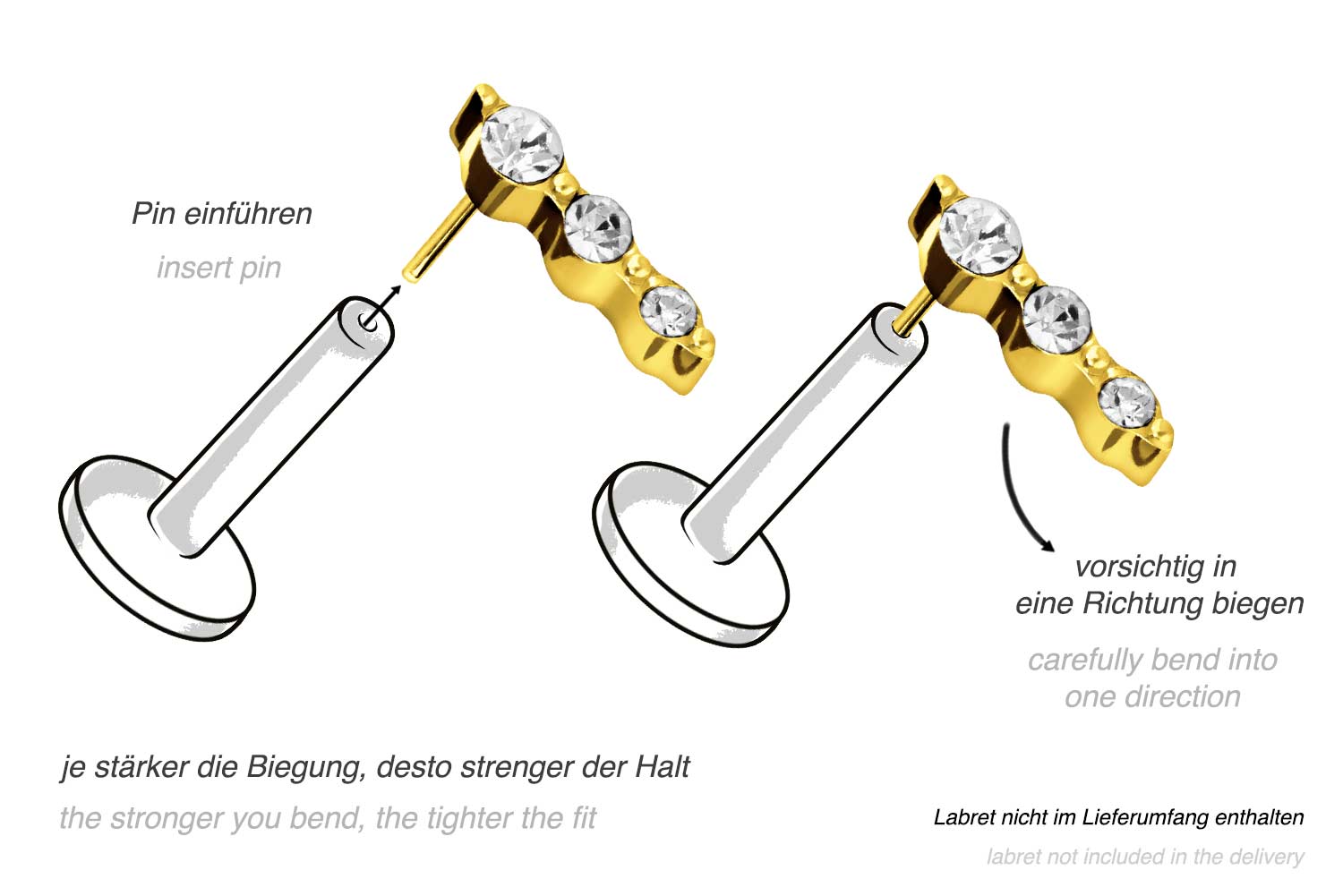 Dieser einzigartige Push Pin Aufsatz in Form von drei funkelnden Kristallen wurde speziell für unsere Push Fit Piercings entwickelt und besteht aus hochwertigem Titan, das sich unter anderem