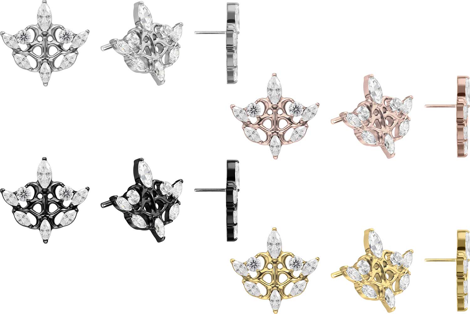 Dieser einzigartige Push Pin Aufsatz in Form eines gotischen Designs wurde speziell für unsere Push Fit Piercings entwickelt und besteht aus hochwertigem Titan, das sich unter anderem durch gute Hautverträglichkeit und hohe Beständigkeit auszeichnet. Ebenfalls zu seinen spezifischen Materialeigenschaften gehört Farbechtheit, die sowohl bei der silberfarbenen als auch bei der schwarzen, gold- und roségoldfarbenen Variante mit PVD-Beschichtung gewährleistet wird. Zum Einsetzen muss der Pin nach Belieben gebogen werden. Es ist zu beachten, dass ein festerer Halt gewährleistet ist, wenn der Pin ein bisschen stärker gebogen wird. Darüber hinaus ist der Push Pin des Aufsatzes mit all unseren Push Fit Produkten kompatibel, sodass sich vielfältige Kombinationsmöglichkeiten ergeben.