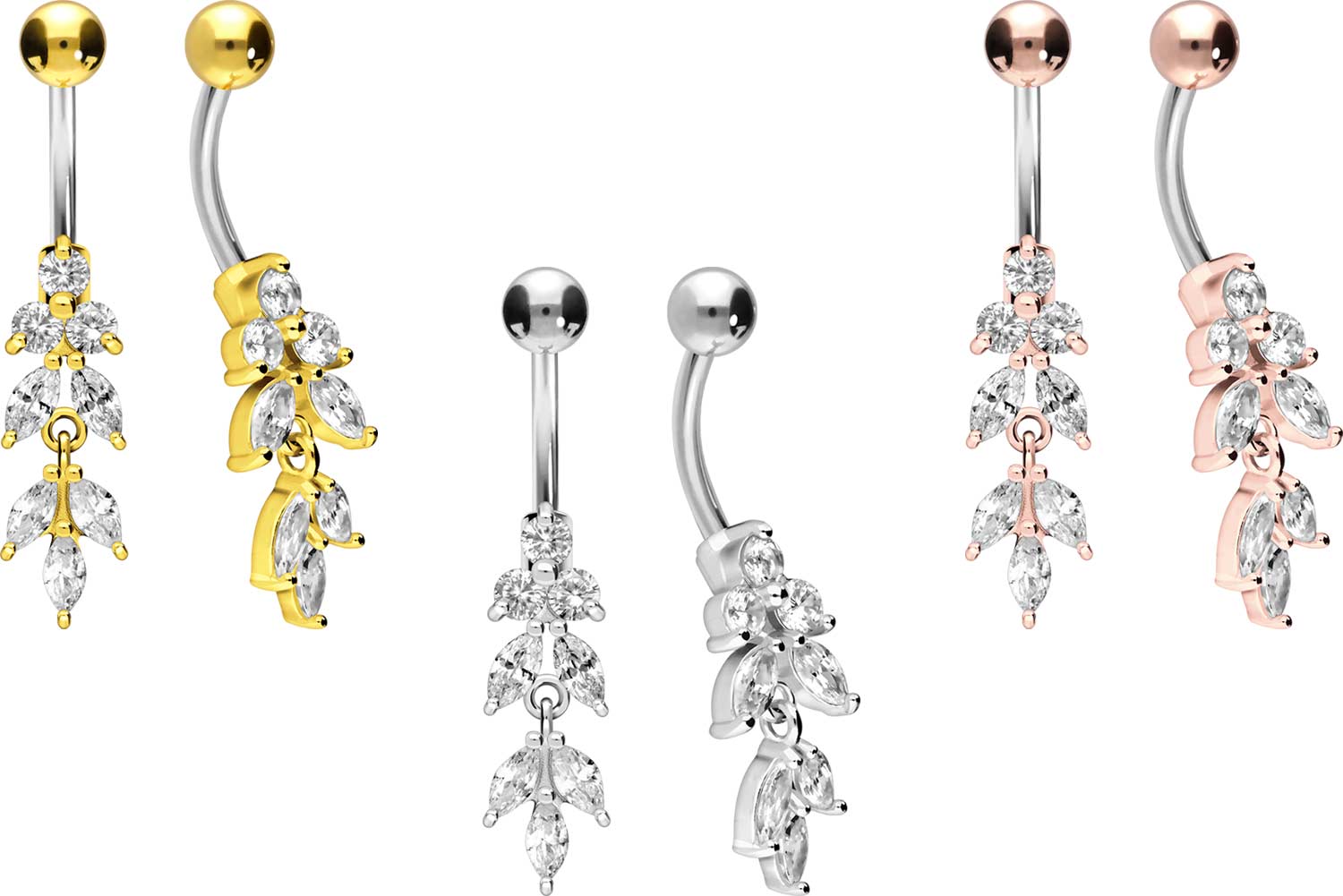 Titan - Bauchnabelpiercing mit 925er Silber-Design Blätter