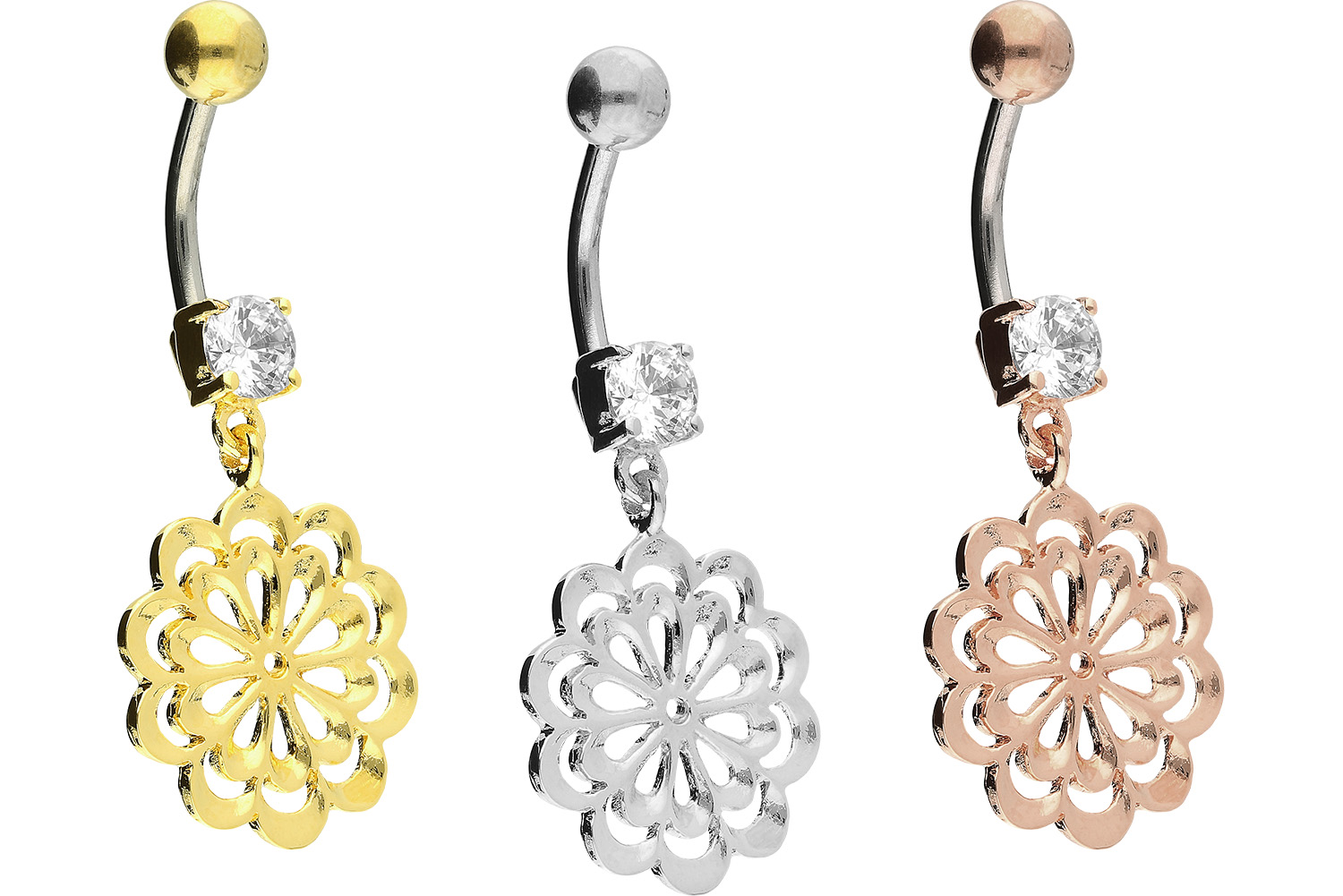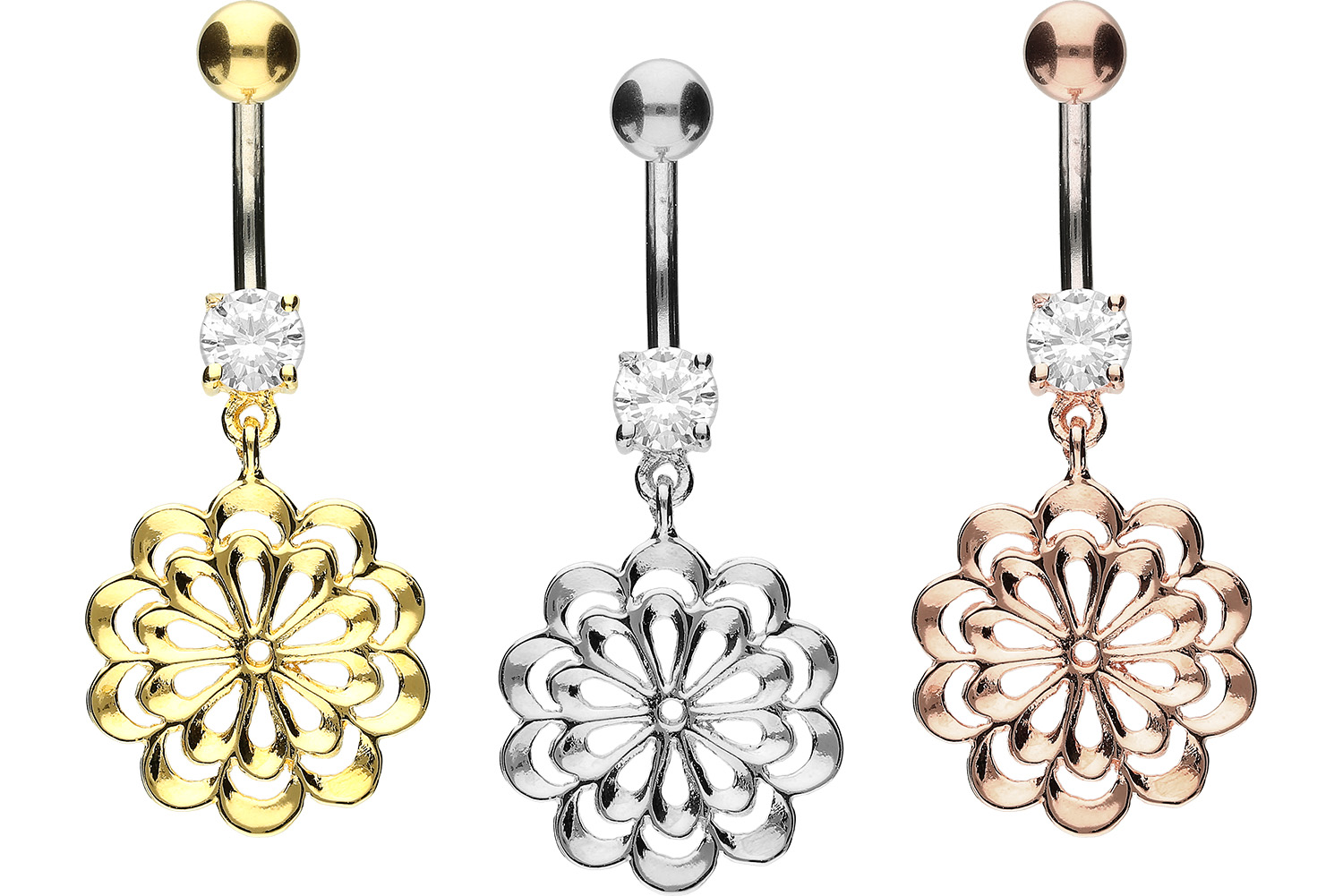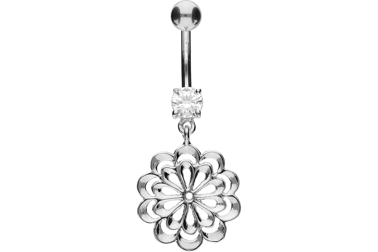 Titan - Bauchnabelpiercing mit 925er Silber-Design Blume
