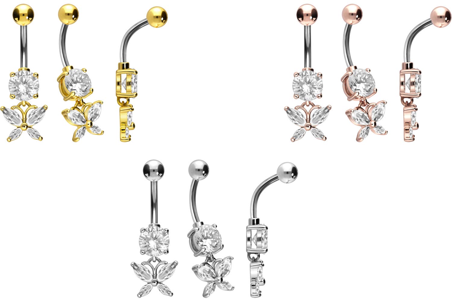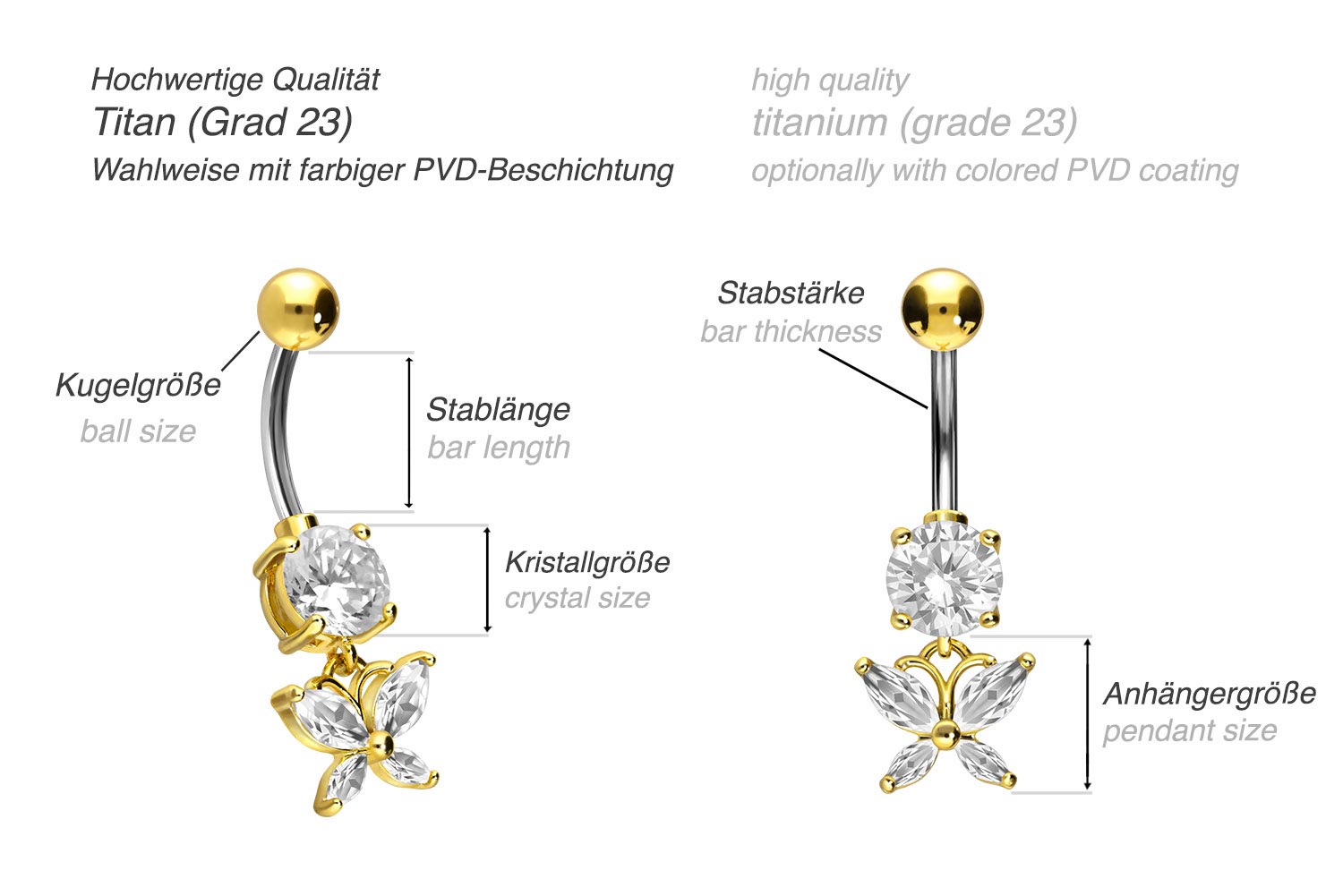 Titan - Bauchnabelpiercing mit 925er Silber-Design Kristallschmetterling
