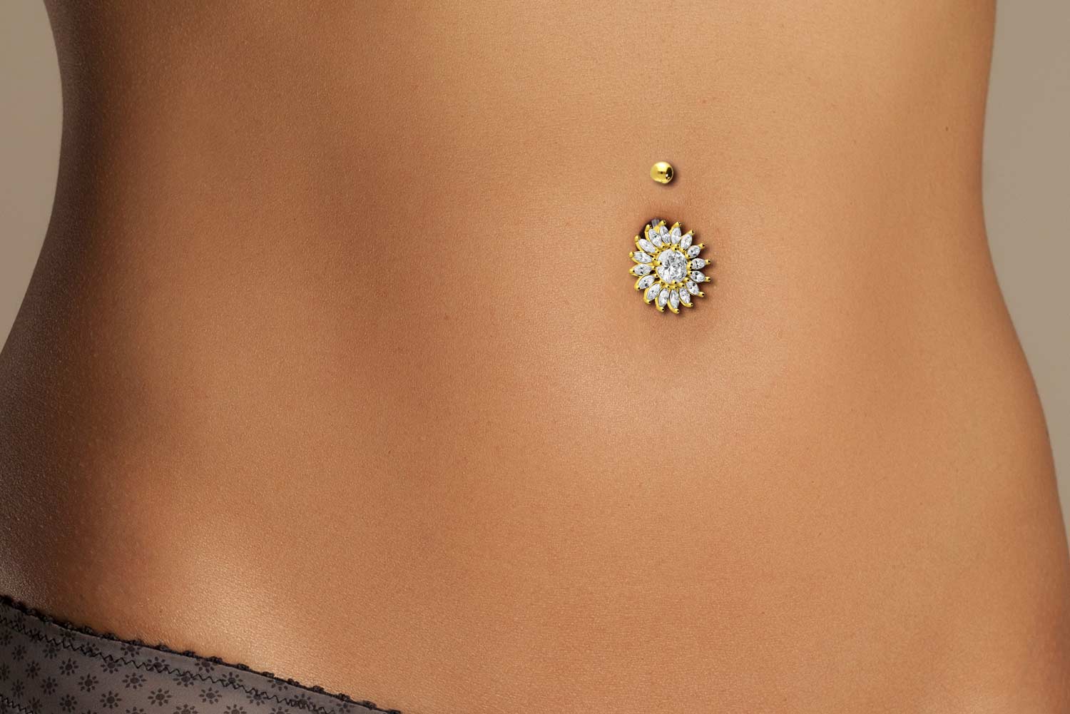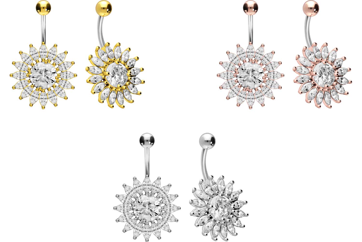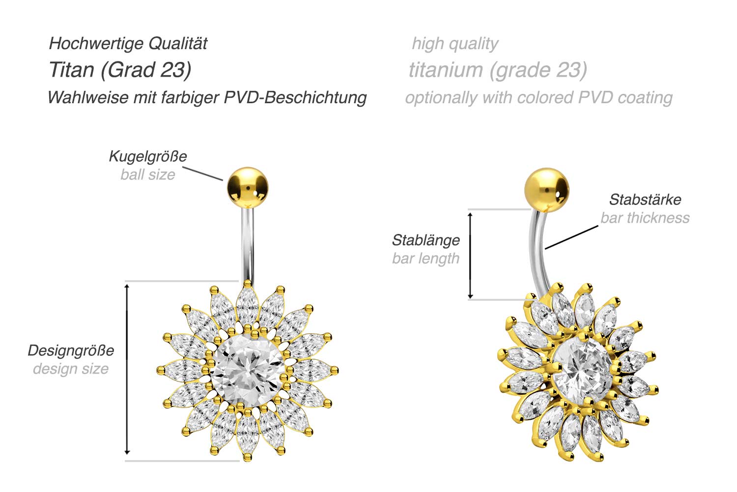 Titan - Bauchnabelpiercing mit 925er Silber-Design Sonne