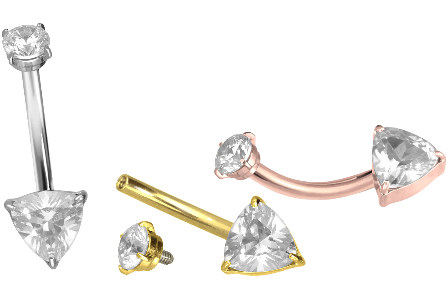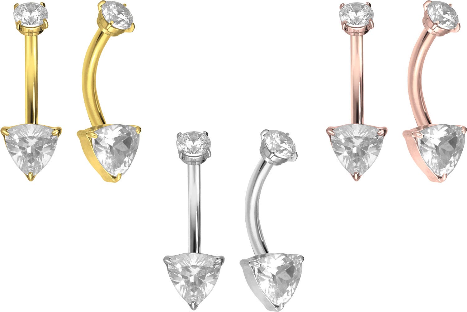 Titan - Bauchnabelpiercing mit Innengewinde Kristalldreieck